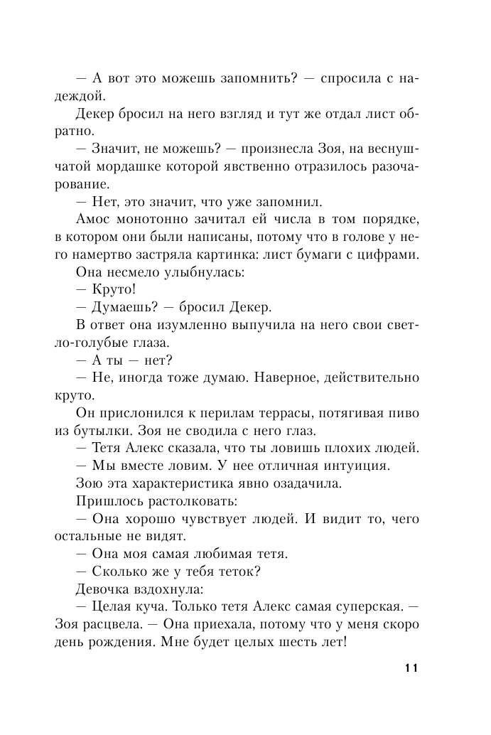 Сразу оговорюсь, что с первых страниц очень явно прослеживается предвзятость автора к своим персонажам. Алекс Джеймесон превозносится всеми возможными способами, хотя исключительно на мой вкус, ничего интересного из себя не представляет. И даже статус агента ФБР, полученный ею где-то за кадром, положение не спасает. А вот Амос Декер, глубокий и грамотно прописанный персонаж, начал раздражать автора ещё в предыдущей книге. Чем? Своей главной фишкой)) Да-да, Болдаччи с первой книги нам заявил, что это история полицейского с абсолютной памятью. Собственно, именно этим серия и привлекла, а Амос Декер полюбился многим читателям, в том числе и мне. Но, будем честны, прописывать такого персонажа, который никогда и ничего не забывает, очень сложно. И что же делает Болдаччи? Без стыда и совести нерфит память Амоса, подчеркивая, что тот всё ещё «мемори-мэн», но теперь иногда будет что-то забывать)) В местах, когда это выгодно автору, разумеется))))
