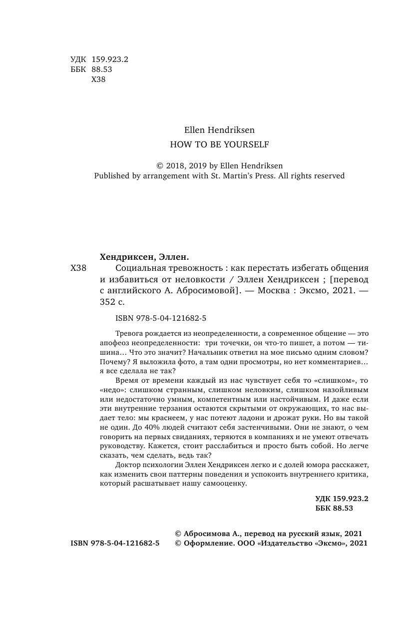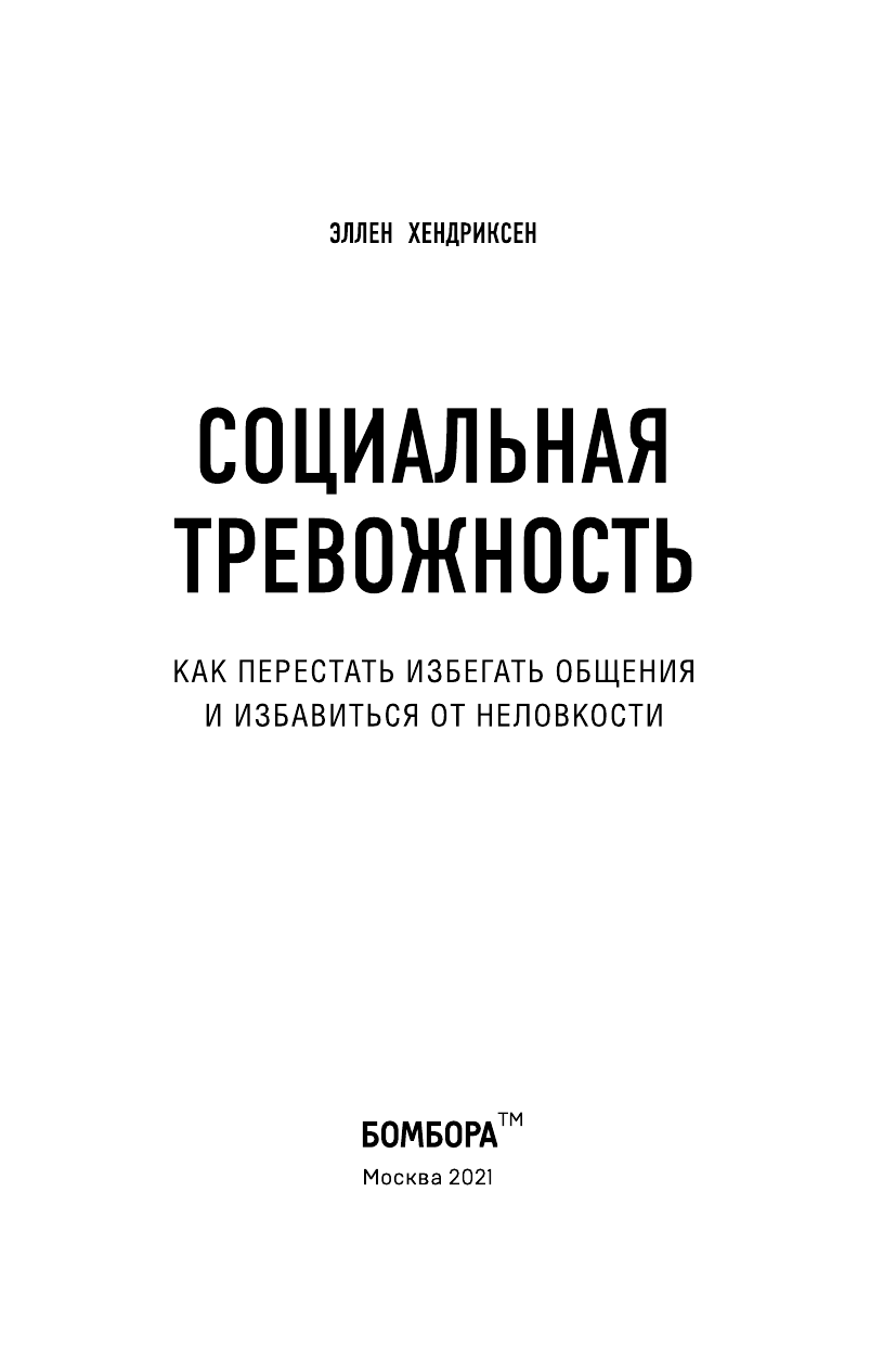 Социальная тревожность. Как перестать избегать общения и избавиться от неловкости (Эллен Хендриксен); Эксмо, БОМБОРА, 2021