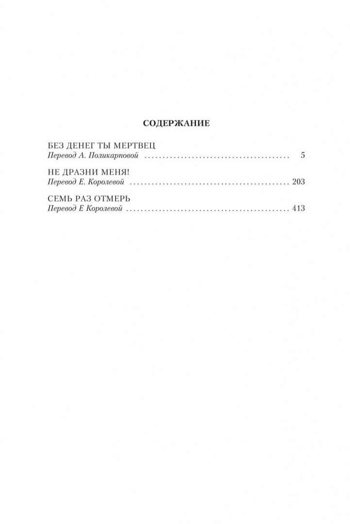 В сборник вошли романы "Без денег ты мертвец" (1972), "Не дразни меня!" (1979) и "Семь раз отмерь" (1980) из цикла "Парадиз-Сити".