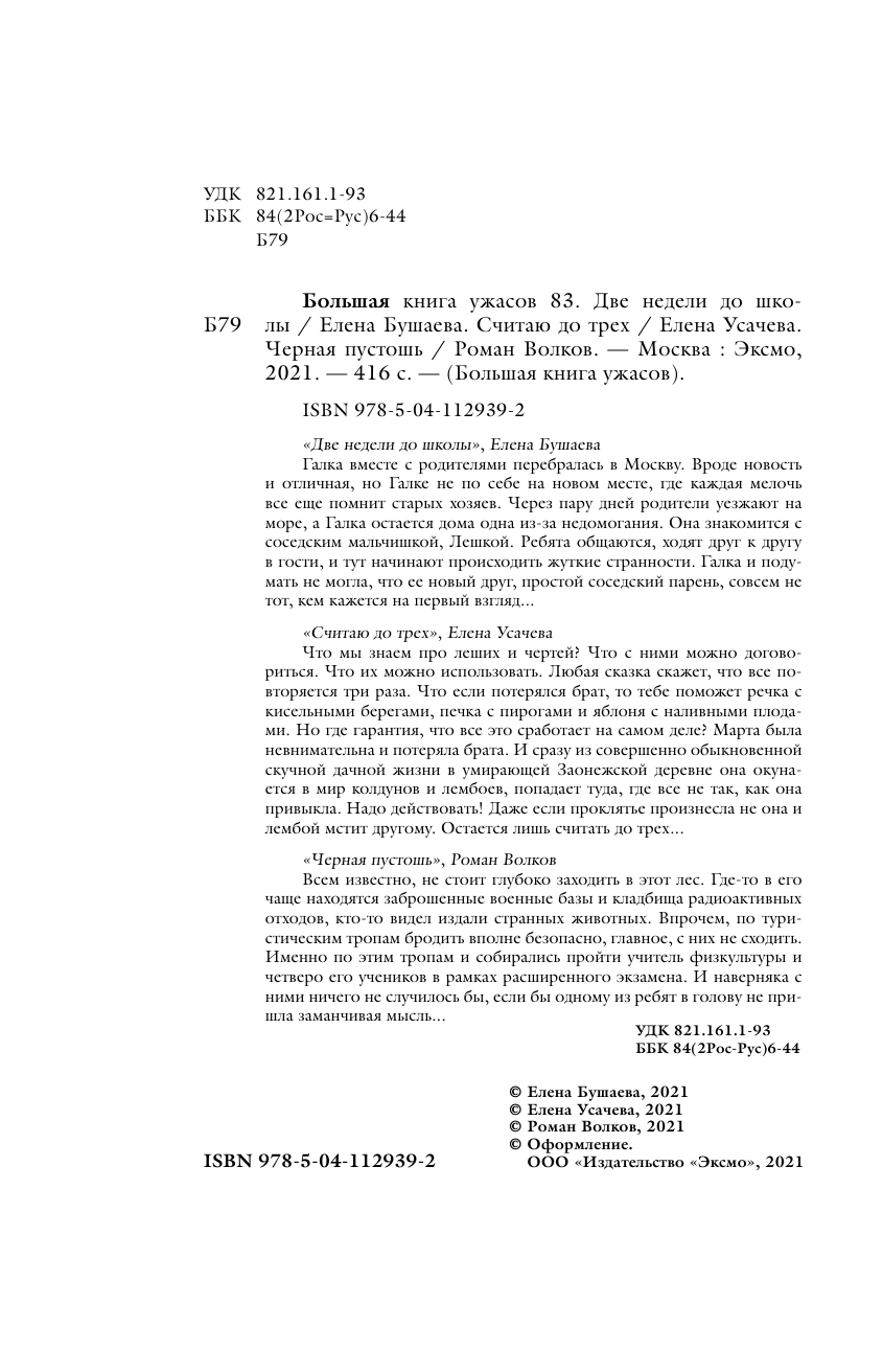 Книга: Большая книга ужасов 83 (Усачёва Елена Александровна, Волков Роман Валериевич, Бушаева Елена); ООО "Издательство "Эксмо", 2021