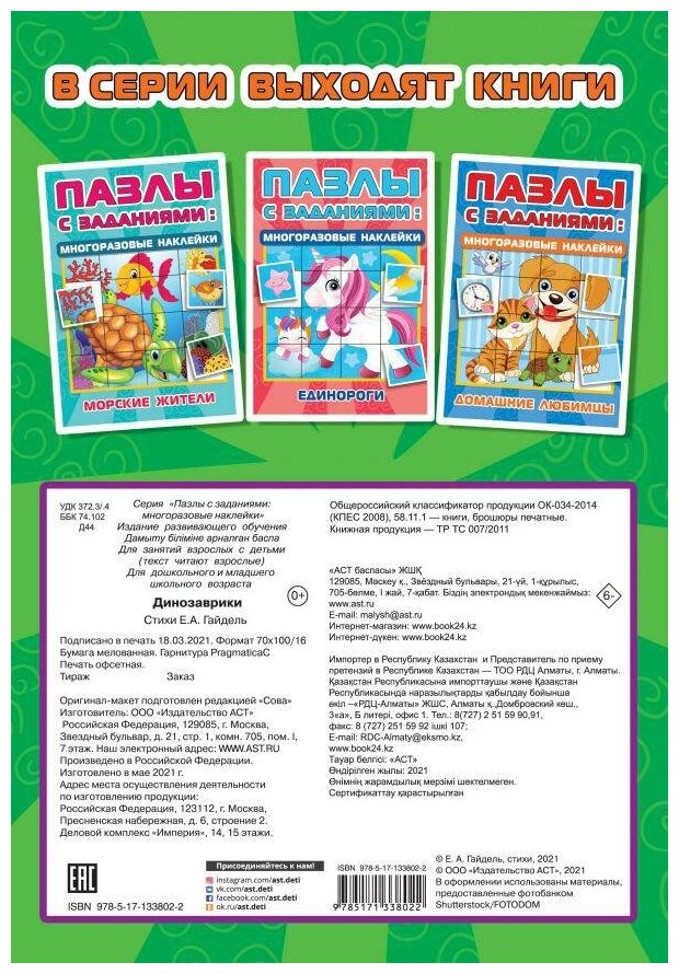 | Серия | Пазлы с заданиями: многоразовые наклейки |
