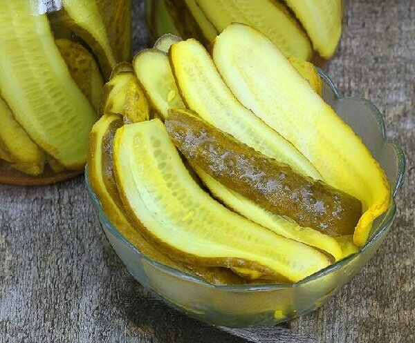 Состав: Огурцы, вода, сахар-песок, соль, укроп, перец сладкий, уксусная кислота-регулятор кислотности, семя горчицы, краситель: рибофлавин, специи