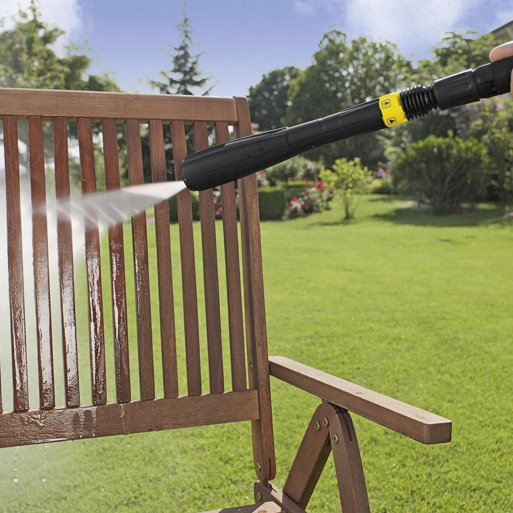 Формирует струи 5 видов: низкого давления (для нанесения моющего средства), веерную высокого давления, расширенную веерную, точечную и роторную. Выбор струи осуществляется вращением трубки.