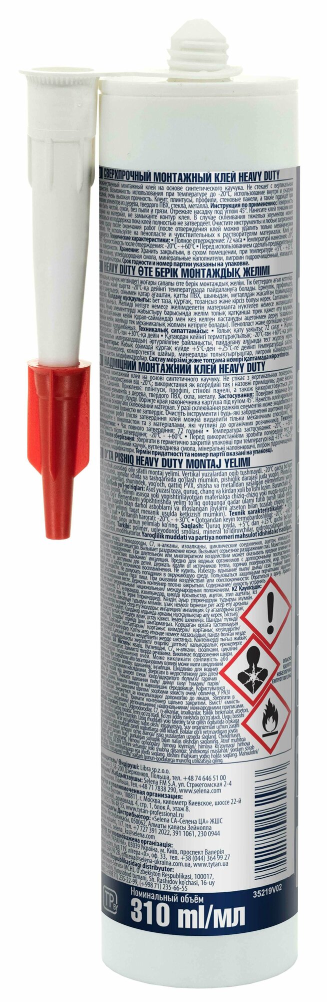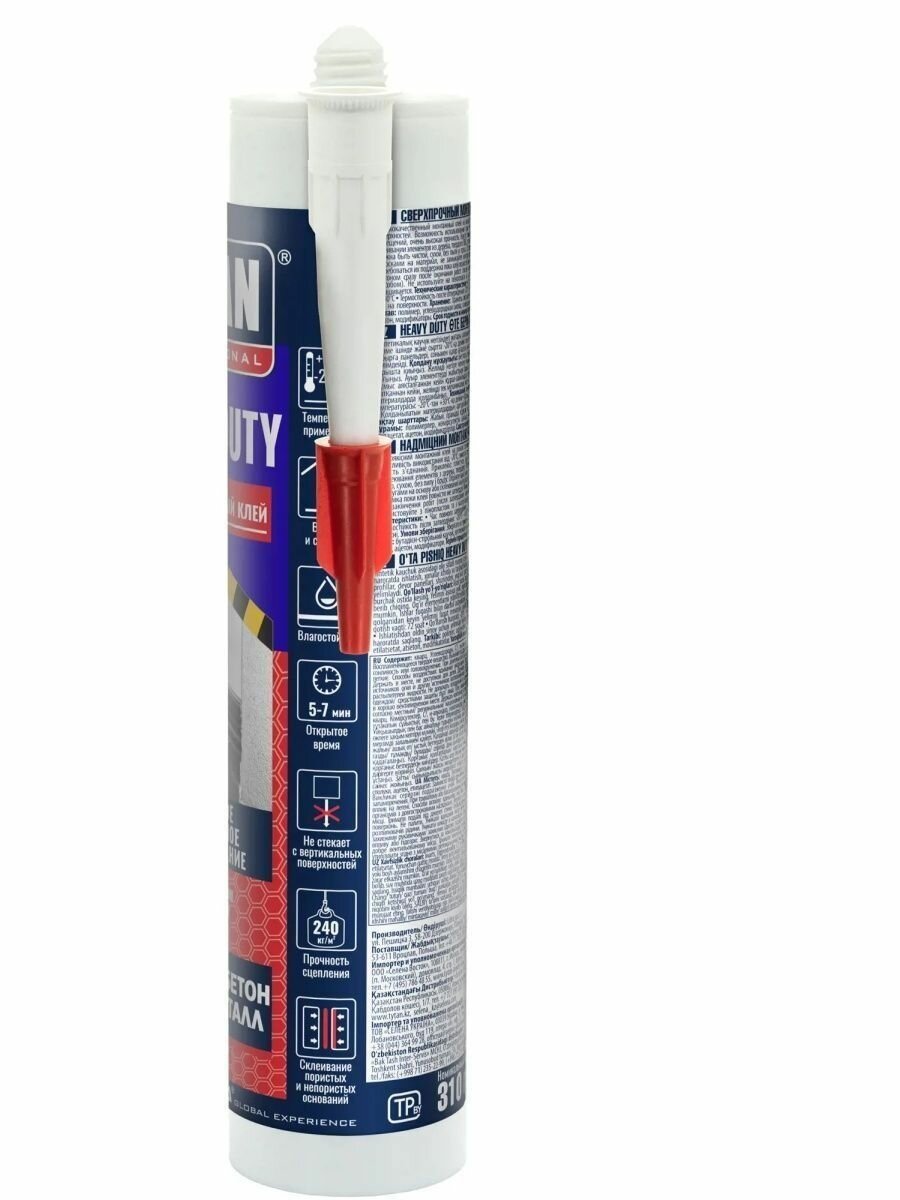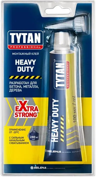 Монтажный клей TYTAN PROFESSIONAL HEAVY DUTY каучуковый 310мл 62963 используется в строительстве и ремонте для надежного крепления тяжелых конструкций.