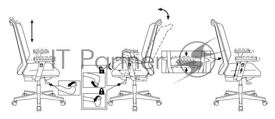 | Регулировки | высоты, высоты подлокотников, поясничной области |