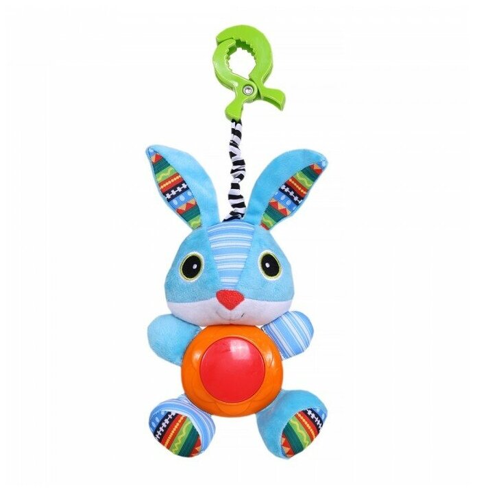 Надавите на живот, чтобы услышать звук пищалки. Пластиковая клипса поможет крепить игрушку к коляске или автокреслу, для того, чтобы любимая игрушка могла путешествовать с вами повсюду.