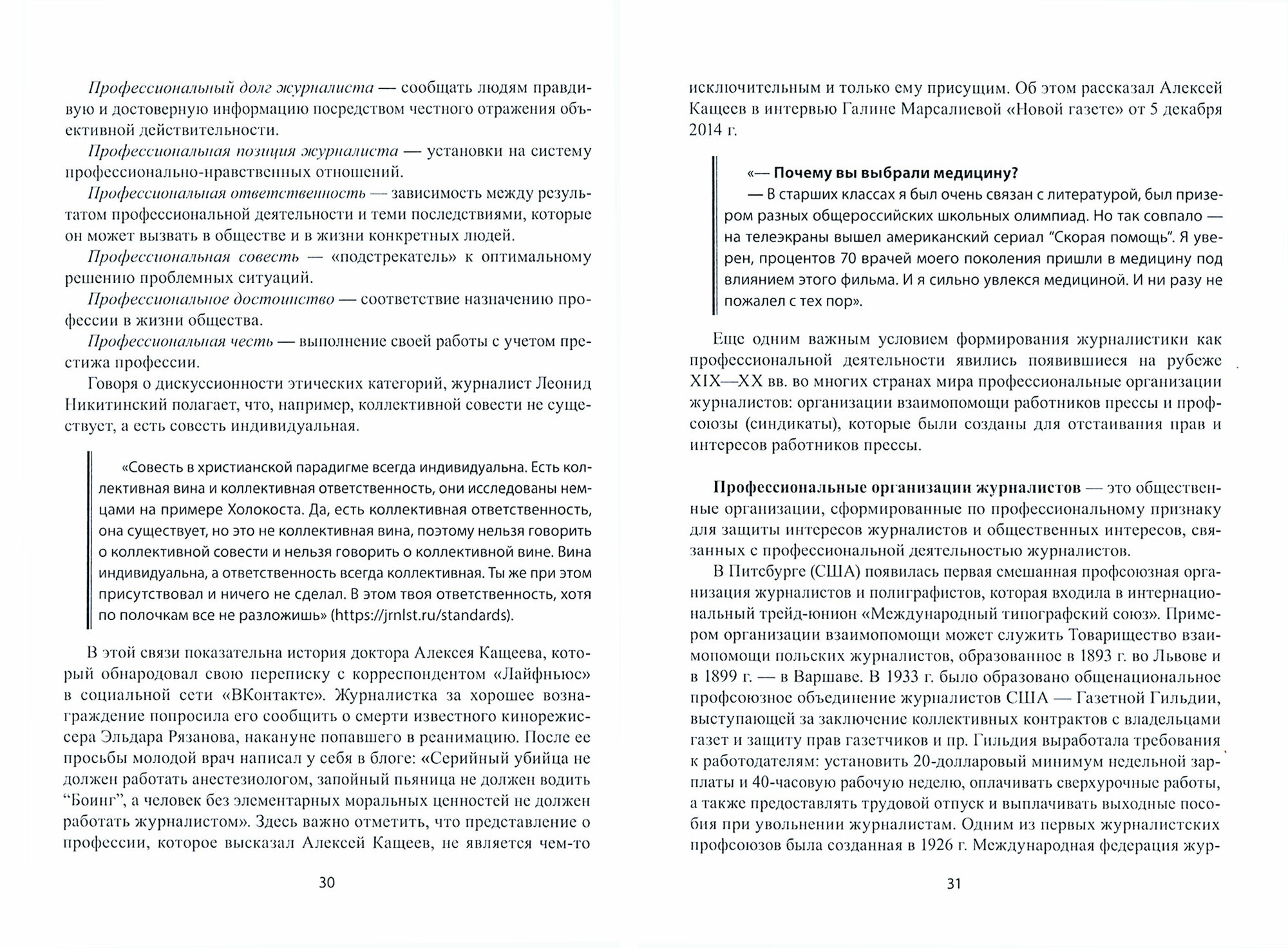 Этика журналиста рассмотрена в учебнике в контексте этапов формирования журналистики как профессиональной деятельности и в формате проектно-ориентированных задач, случаев из журналистской практики. Учебник состоит из двух частей. В первой студентам предлагаются некоторые теоретические знания о журналистике, становление которой было связано с закреплением ее общественного статуса через появление этических и правовых норм, института омбудсмена, технологических стандартов, профессиональных союзов и объединений журналистов. Вторая часть представляет собой этические коллизии с вариантами решений задач от практикующих журналистов. На все задачи представлены ответы российских и западных журналистов, которые носят дискуссионный характер. Учебник не дает правильных ответов, но способствует поиску ответов на непростые вопросы из журналистской практики.
