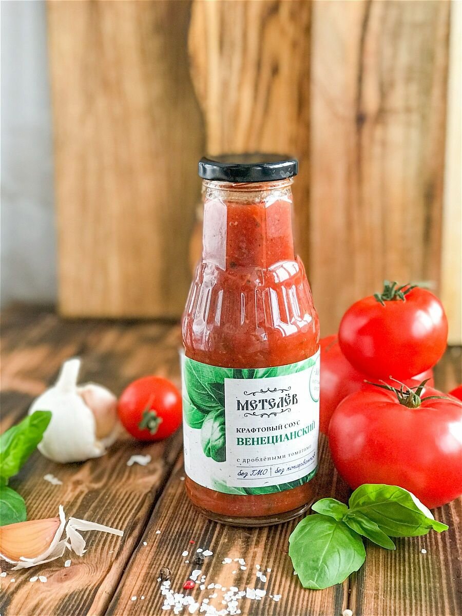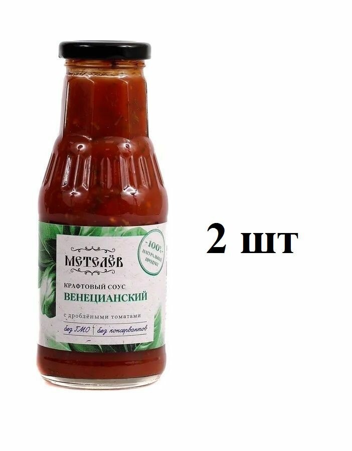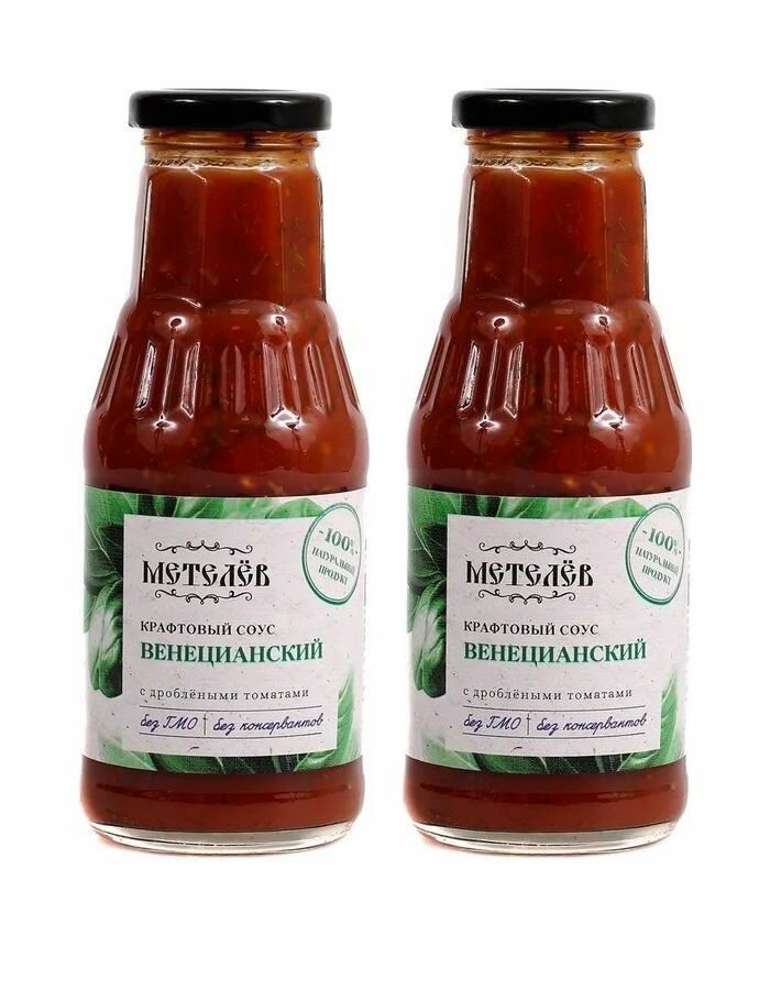 Соус Метелев Венецианский крафтовый с дроблеными томатами 330 г х 2 штКусочки томатов с базиликом. Особый аромат придает чеснок.Базилик содержит много эфирных масел с приятной, сладковатой нотой.Очень хорошо влияет на вкус мяса, особенно баранины или свинины.Прекрасно дополнит даже обычные спагетти, будет отлично сочетаться с практически любым гарниром.Соусы Метелёв — это идеальное дополнение к любому блюду.Они придают еде аромат, вкус и цвет, а также обогащают ее полезными веществами.Соусы Метелёв изготавливаются из натуральных ингредиентов без консервантов, красителей и ароматизаторов.Соусы Метелёв подходят для разных случаев и предпочтений.Вы можете экспериментировать с ними и создавать свои уникальные рецепты.Соусы Метелёв — это не просто приправа, а целый мир вкуса!дизайн упаковки может незначительно отличаться от фото!