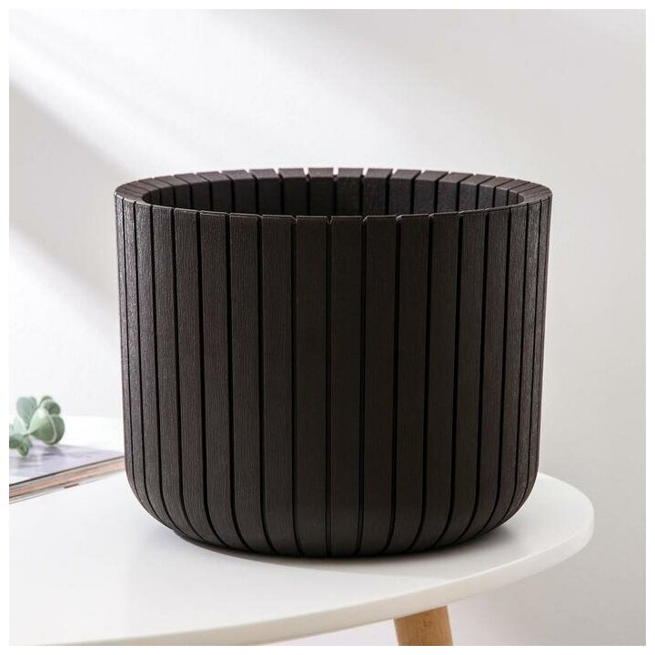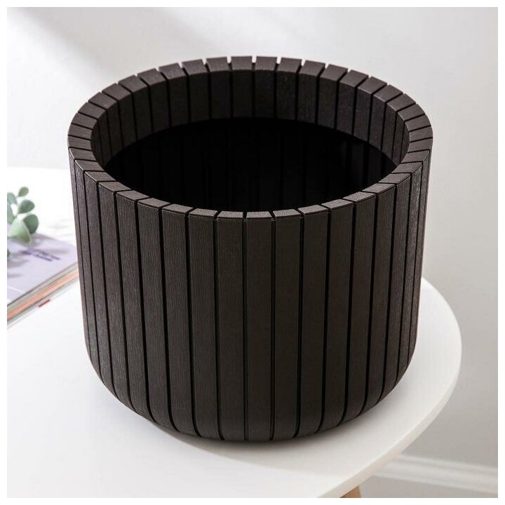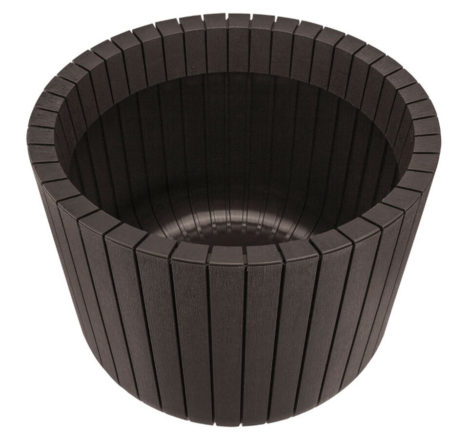 Кашпо Шато выполнено из прочного пластика, имеет рельефную поверхность с имитацией отдельных деревянных дощечек. Изделие отличается прочностью, долговечностью и простотой в уходе.