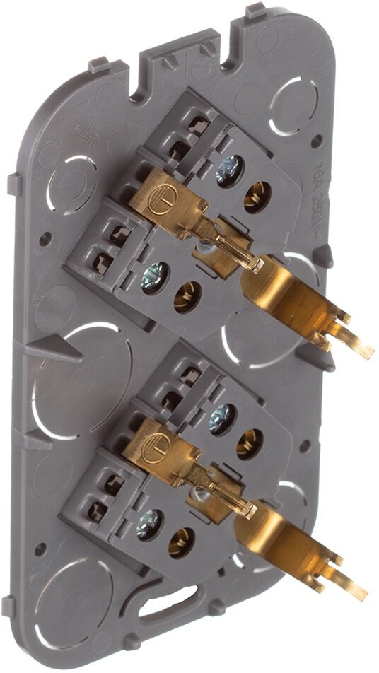 Двухместная розетка 2К без шторок, со степенью защиты IP20 может устанавливаться как вертикально, так и горизонтально