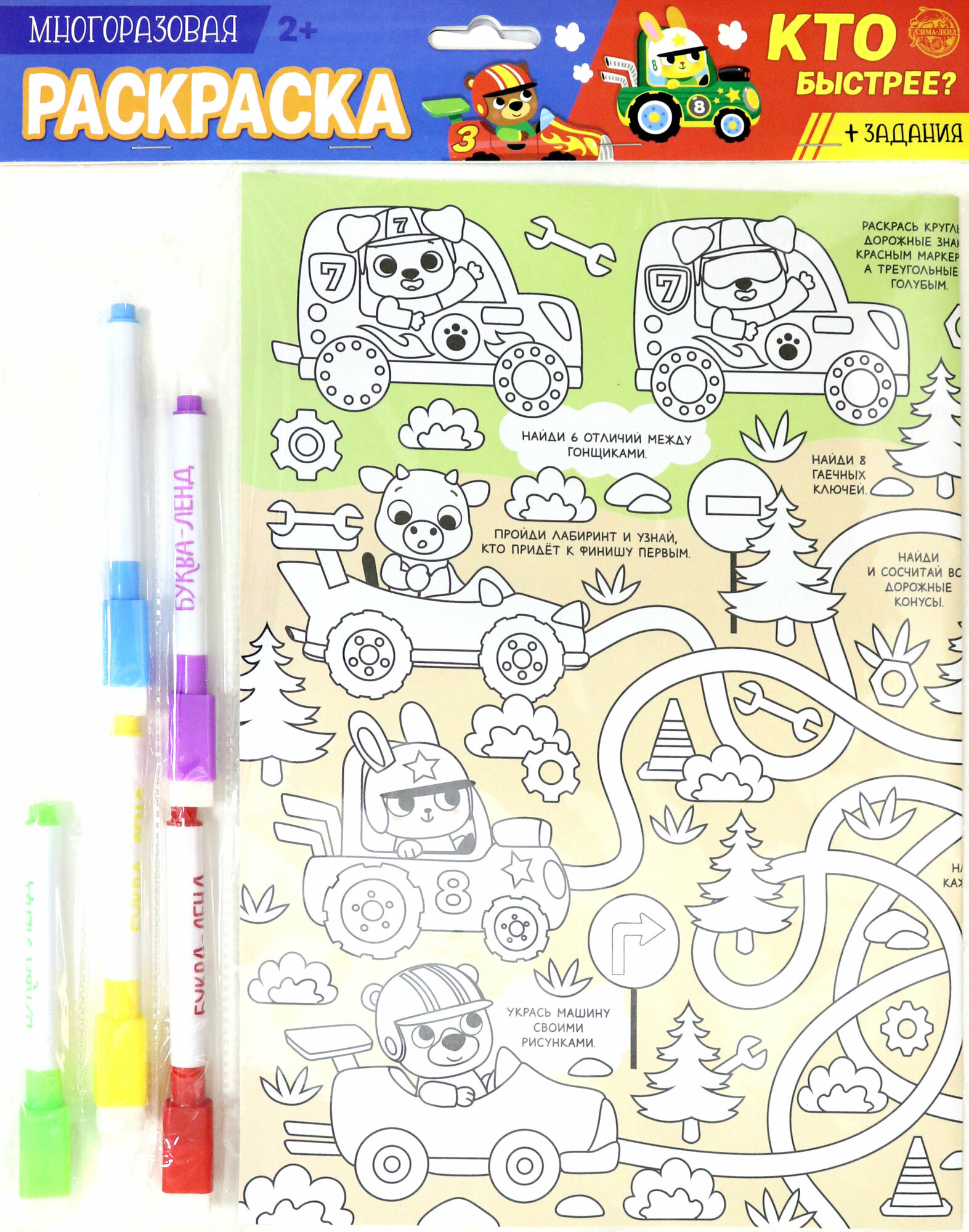 Многоразовая раскраска "Кто быстрее?"; Буква-ленд, 2021