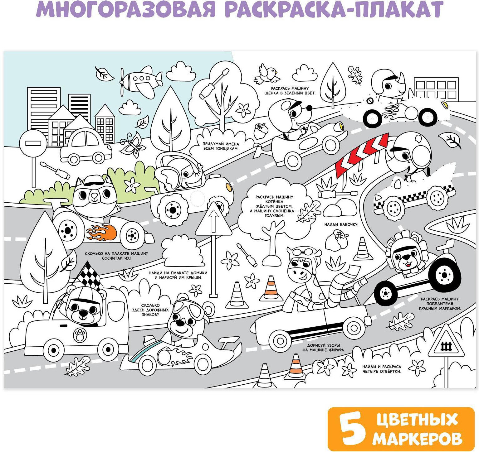 Многоразовая раскраска с заданиями.