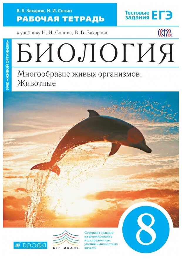 Биология 8 класс Многообразие живых организмов Животные Рабочая тетрадь Тестовые задания ЕГЭ (Захаров В., Сонин Н.); Дрофа, 2021