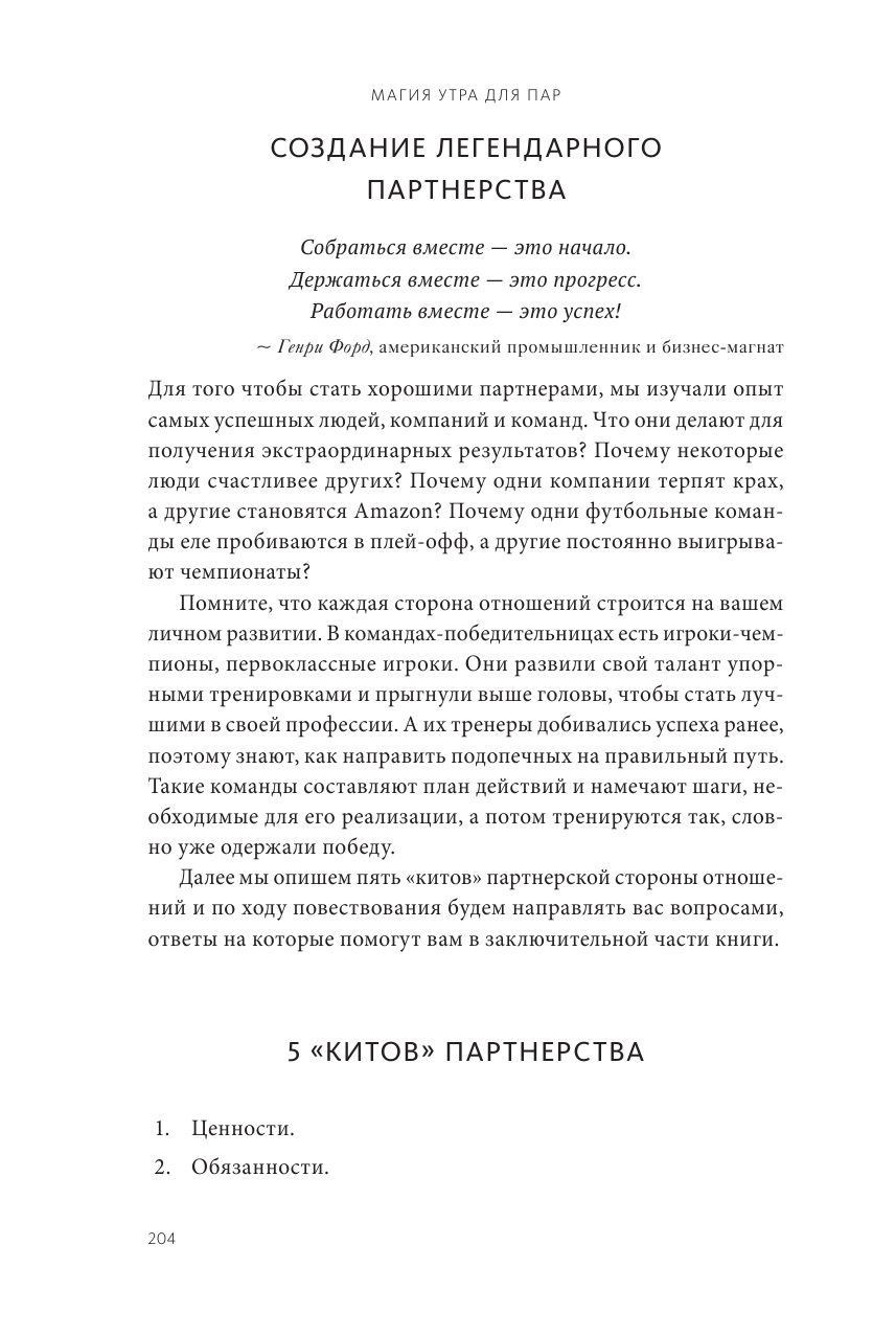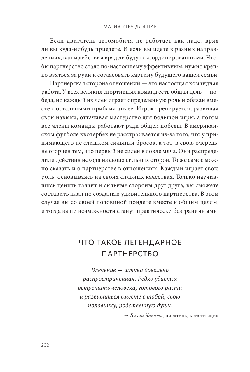 Работая над очередной книгой из серии "Магия утра", я всегда стараюсь привлекать соавторов, чей пример можно назвать наглядной иллюстрацией ценностей и мудрости, по моему мнению, способных в корне изменить жизнь читателя. Эта книга призвана обеспечить вас пошаговой инструкцией для личностной трансформации, а также трансформации отношений - не важно, в браке вы или одиноки, разведены или помолвлены.