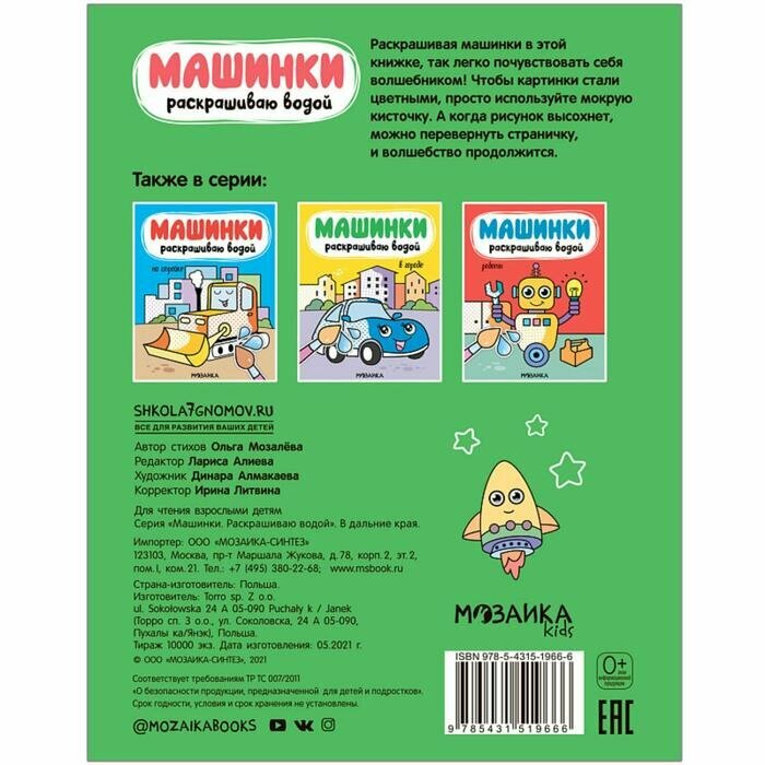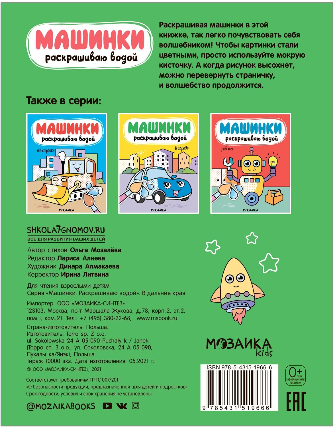 Сервис сравнения цен СкидкаГИД предлагает сравнить цены на товар «Книга: Машинки. Раскрашиваю водой. В дальние края (Ольга Мозалева); МОЗАИКА kids, 2022»