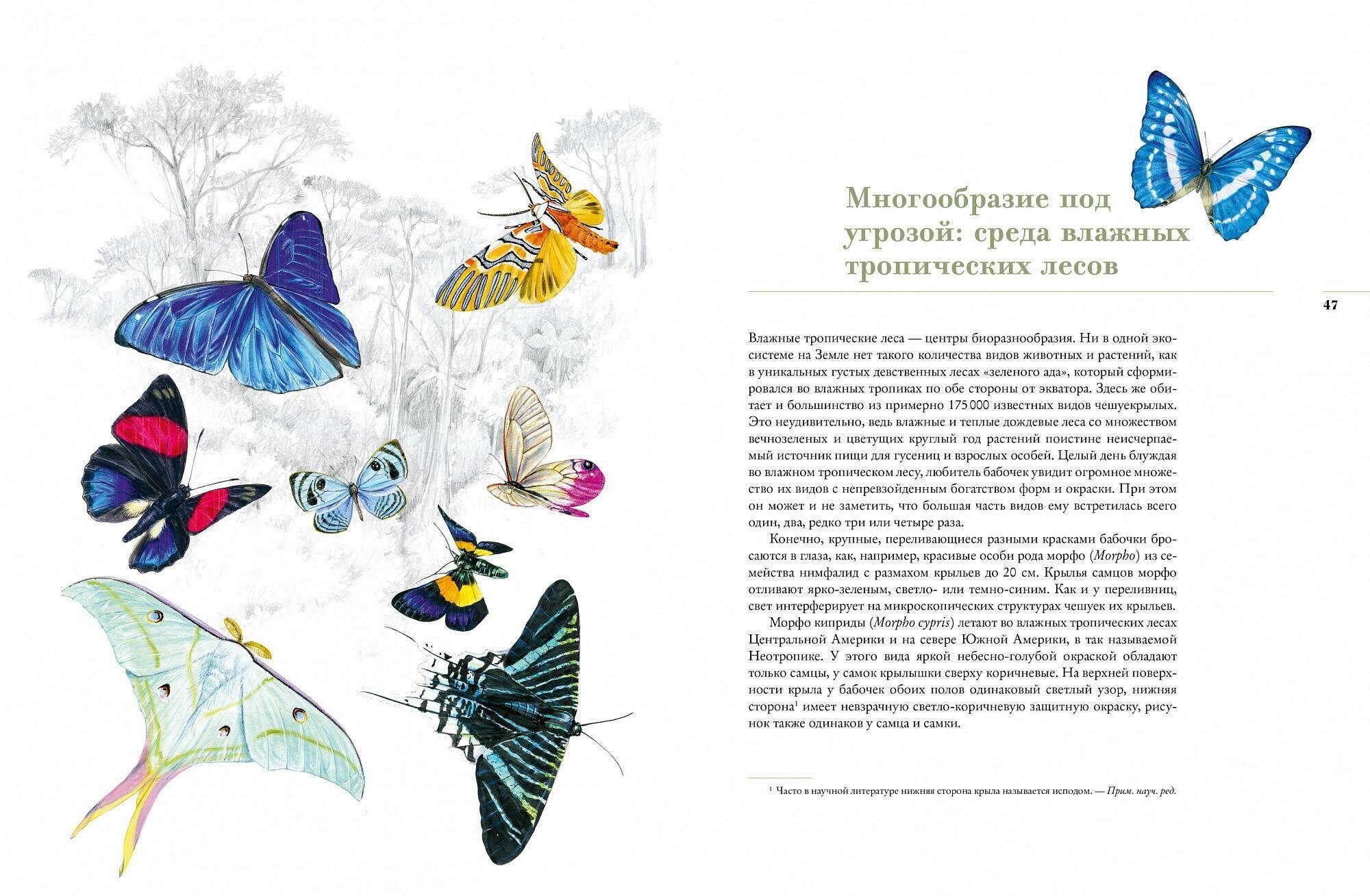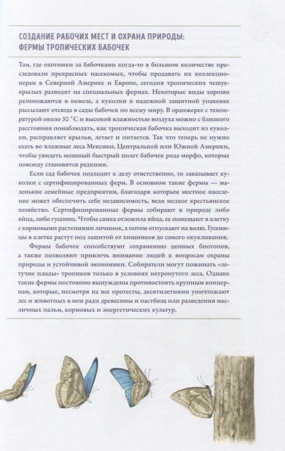 В этой уникальной книге, посвященной бабочкам, рассматриваются как единое целое все стадии развития бабочки и весь окружающий микрокосмос, весь спектр взаимосвязей, из которых состоит жизненная среда этих насекомых. Известный немецкий художник Иоганн Брандштеттер в сотрудничестве с биологом Эльке Циппель показывают многообразие сред обитания бабочек — лугов с бедными почвами, верховых болот и болотных лугов, высокогорий, пойменных лесов, тундры, тайги, крайнего севера Евразии, влажных тропических лесов, опушек и лугов с высоким травостоем, пахотных полей и других, а также многообразие самих бабочек, предваряя рассказ кратким введением в основы систематики. Описан внешний вид бабочек, их жизненный цикл, то, чем они питаются и где обитают, как самцы привлекают самок, какие у бабочек существуют враги, как они защищаются от нападений и где, когда и как их лучше наблюдать. В книге учтены самые современные данные и научные публикации по теме, а благодаря потрясающим иллюстрациям издание станет отличным подарком истинным ценителям прекрасного.