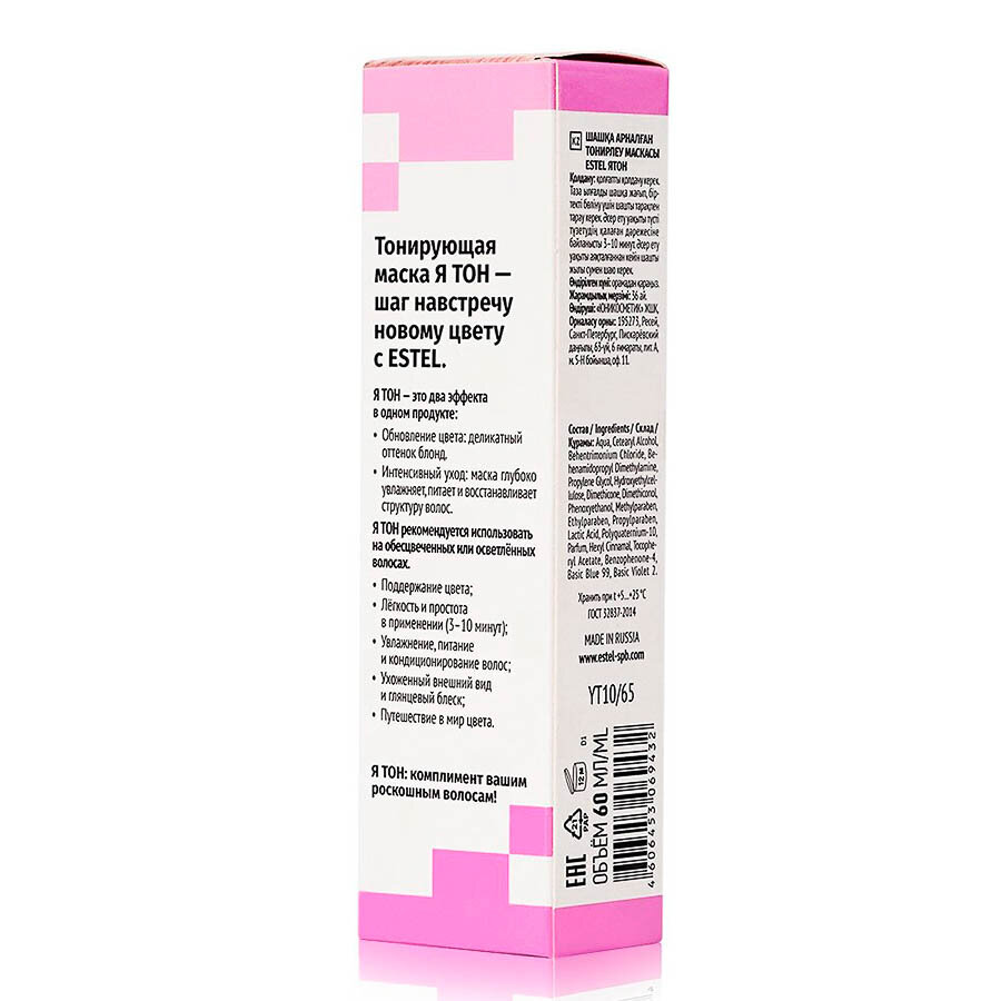 Тонирующая маска для волос ЯТОН предназначена, как для поддержания и обновления цвета уже окрашенных волос, так и для придания яркости, интенсивности и глубины оттенков натуральным локонам. Освежает и корректирует цвет между окрашиваниями. Придает насыщенность цвету и блеск волосам. Для обладательниц окрашенных волос, тонирующая маска Я ТОН, станет своевременной скорой помощью для самостоятельного, быстрого и легкого обновления цвета волос. Ухоженный вид и насыщенный цвет волос в ваш образ; Быстрое обновление, не требующее похода в салон красоты; Легкость и простоту нанесения; Возможность регулировать глубину тона, с помощью времени выдержки тонирующей маски. Обладательницам натуральных волос тонирующая маска Я ТОН подарит: Быстрое и бережное тонирование; Натуральные - природные оттенки; Эффект насыщенных и сильных волос; Нанести на чистые влажные волосы, для равномерного распределения прочесать волосы гребнем.