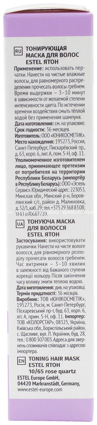 Сервис сравнения цен СкидкаГИД предлагает сравнить цены на товар «Маска тонирующая для волос Estel Я Тон 10/65 Розовый кварц 60мл»