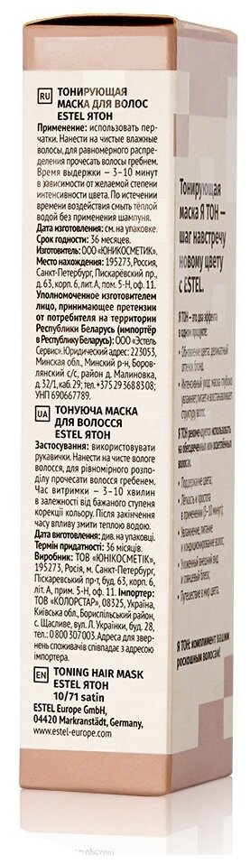 Маска тонирующая для волос Estel Я Тон 10/71 Сатиновый 60мл