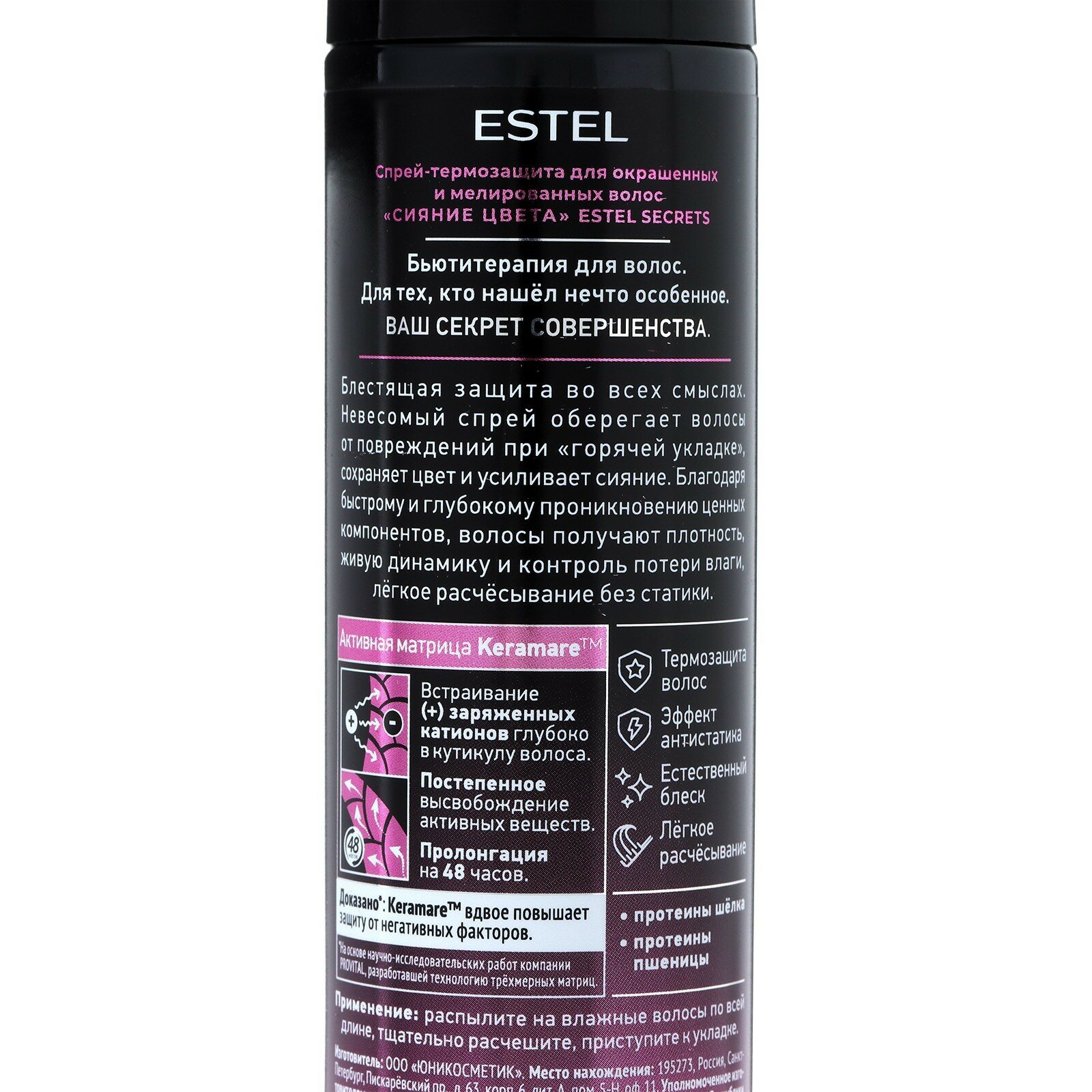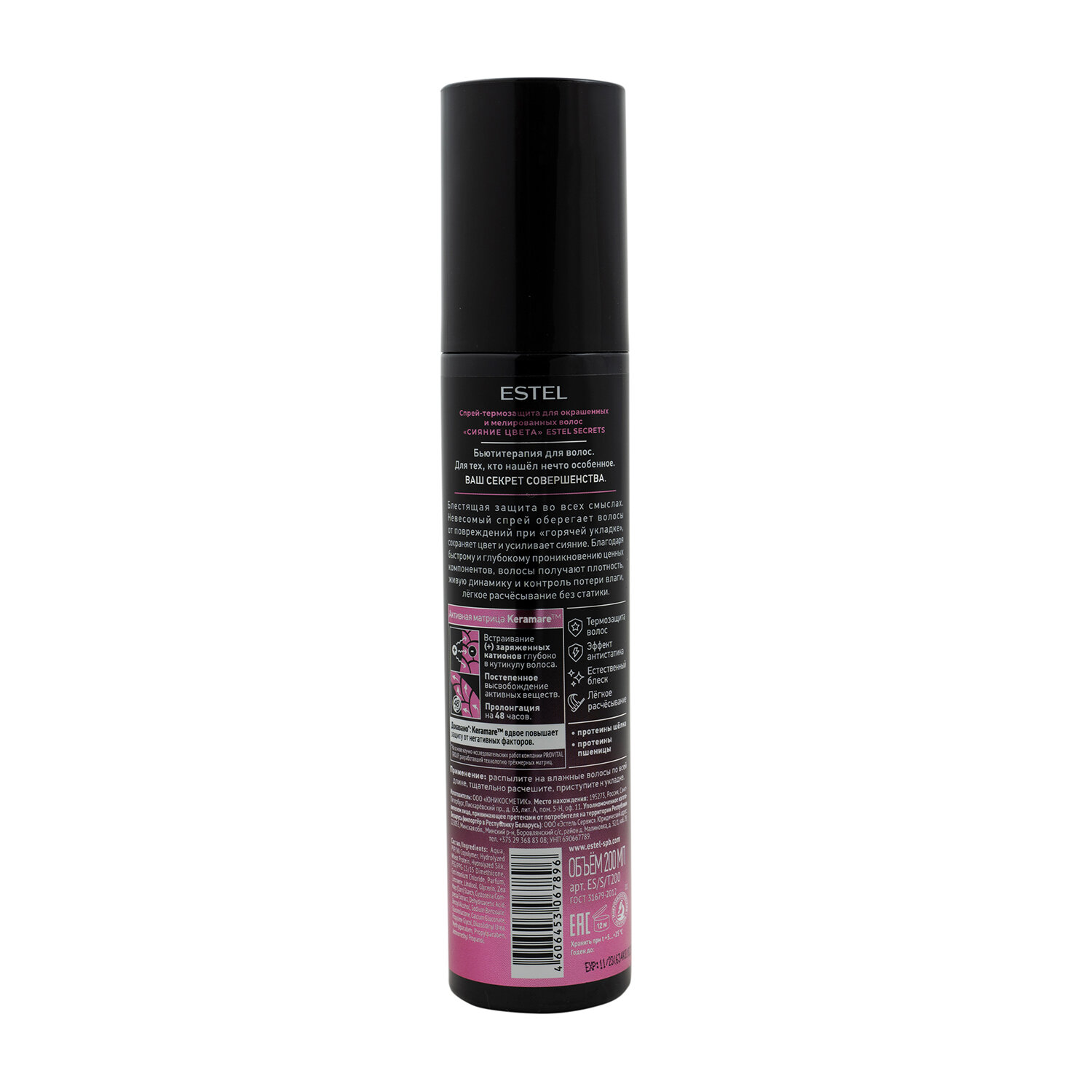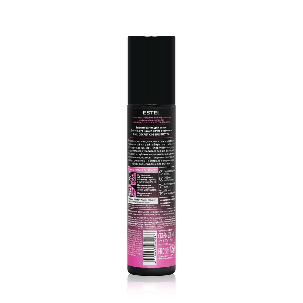 | Полное наименование | Спрей-термозащита для окрашенных и мелированных волос Estel Secrets Сияние Цвета 200 мл |