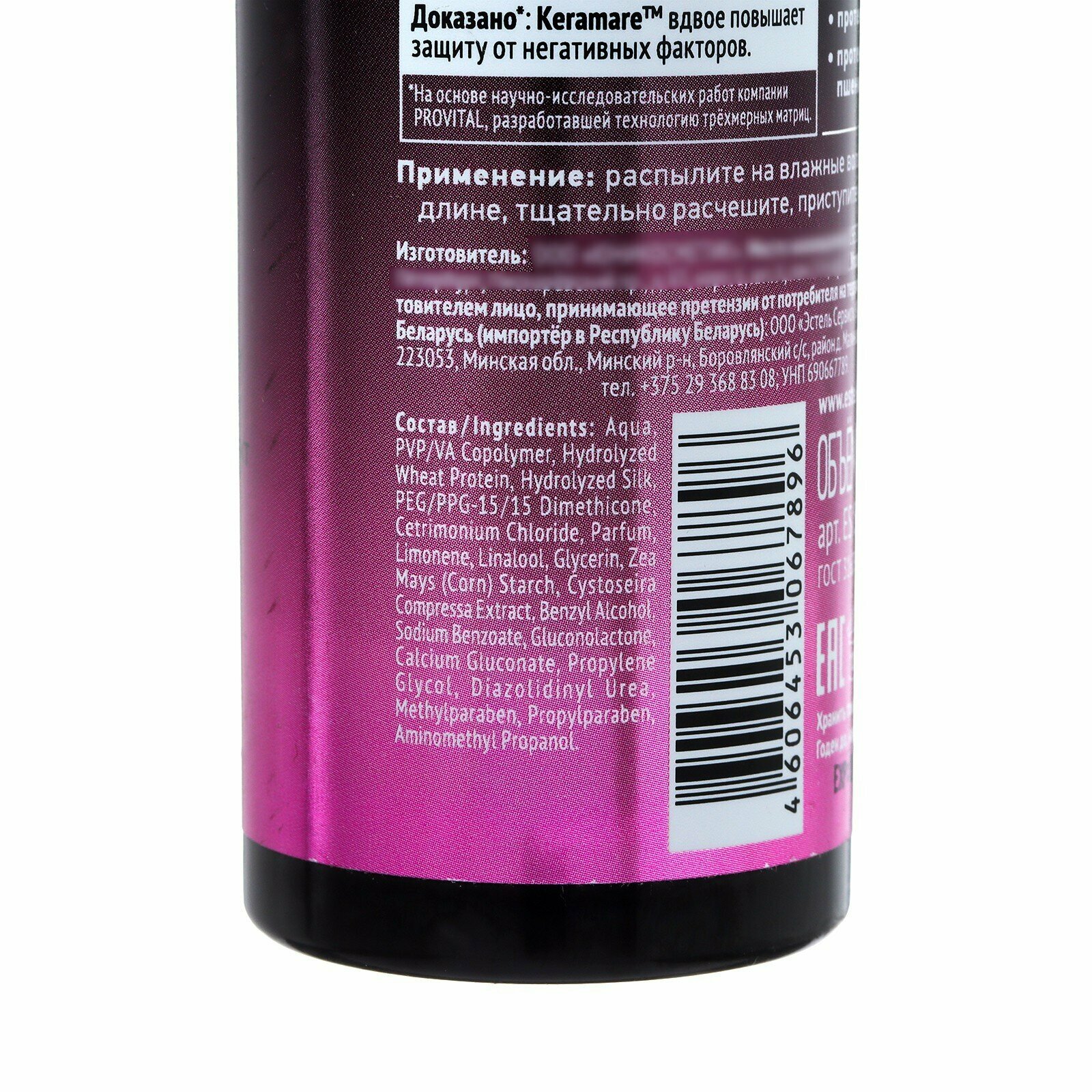 | Состав | aqua, pvp/va copolymer, hydrolyzed wheat protein, hydrolyzed silk, peg / ppg-15/15 dimethicone, cetrimonium chloride, parfum, limonene, linalool, glycerin, zea mays (corn) starch, cystoseira compressa extract, benzyl alcohol, sodium benzoate, gluconolactone, calcium gluconate, propylene glycol, diazolidinyl urea, methylparaben, propylparaben, aminomethyl propanol |