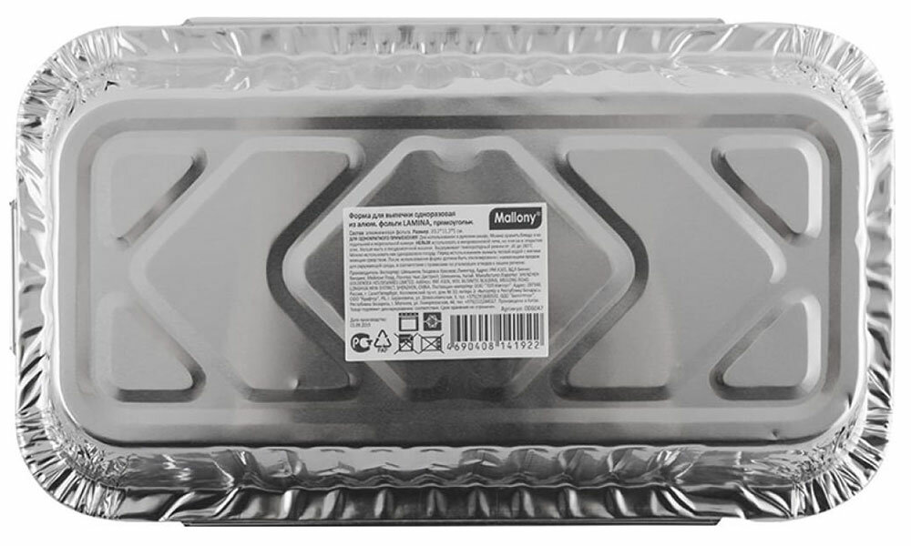 Форма для выпечки 20,2*11,3*5см «LAMINA» одноразовая Для использования в духовом шкафу. Можно хранить блюда в холодильнике/морозильной камере. Нельзя использовать на плитах, на открытом огне, в микроволновой печи. Для однократного использования. Нельзя мыть в посудомоечной машине. Перед первым использованием вымыть теплой водой с мягким моющим средством. После использования утилизировать в соответствии с нормами по утилизации отходов.