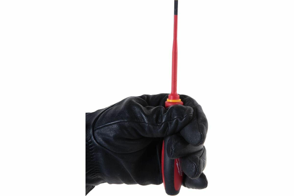 Отвертка прошла тестирование напряжением 10000 Вольт по стандарту VDE и предназначена для работы в электроустановках напряжением до 1000 Вольт. Премиальное качество стали с молибденом и ванадием для большего срока службы. Фрезерованные наконечники для точной посадки и исключения эффекта проскальзывания. Покрытие черным фосфатом наконечника обеспечивает защиту от коррозии. Тонкий стержень для доступа в ограниченном пространстве. 2-х компонентная рукоятка с мягкими накладками обеспечивает комфортную работу. Трехгранный дизайн рукоятки исключает проскальзывание и обеспечивает максимальную передачу момента. Тонкий дизайн передней части для работы с небольшой мощностью и тонких работ по электрике. Лазерная гравировка с типом наконечника на верхней части рукоятки для удобной идентификации. Не катается, благодаря трехгранной рукоятке.