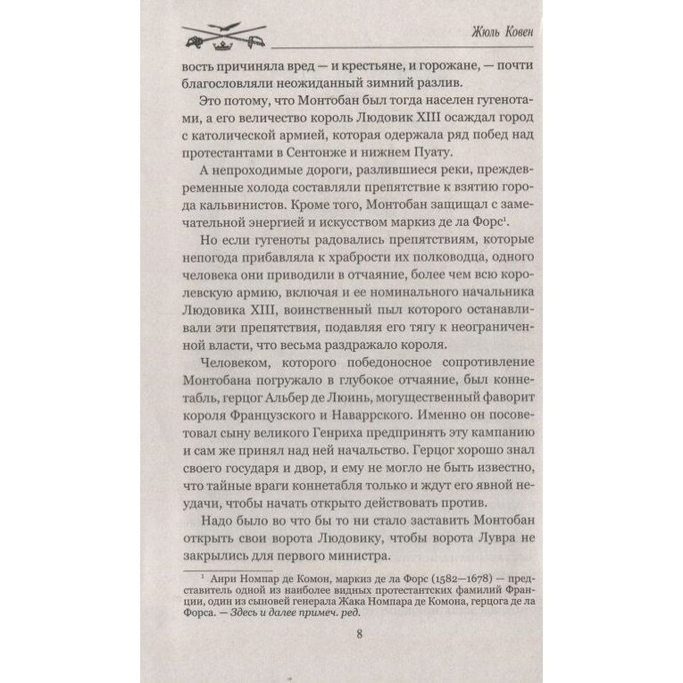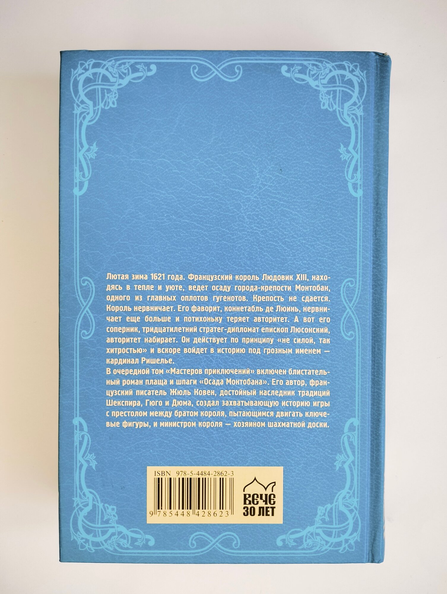 В очередной том "Мастеров приключений" включен роман плаща и шпаги "Осада Монтобана". Его автор, французский писатель Жюль Ковен, достойный наследник традиций Шекспира, Гюго и Дюма, создал захватывающую историю игры с престолом между братом короля, пытающимся двигать ключевые фигуры, и министром короля - хозяином шахматной доски.