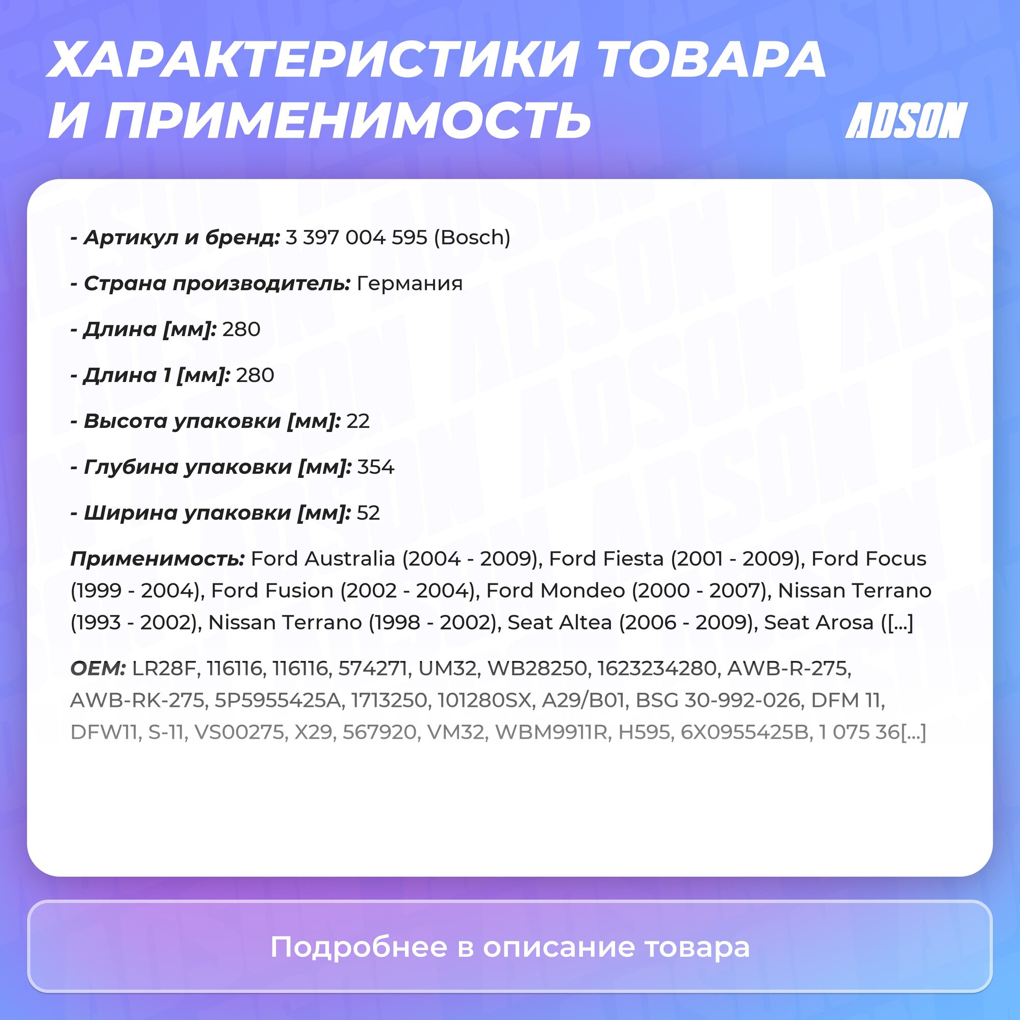 | Назначение | для заднего стекла |