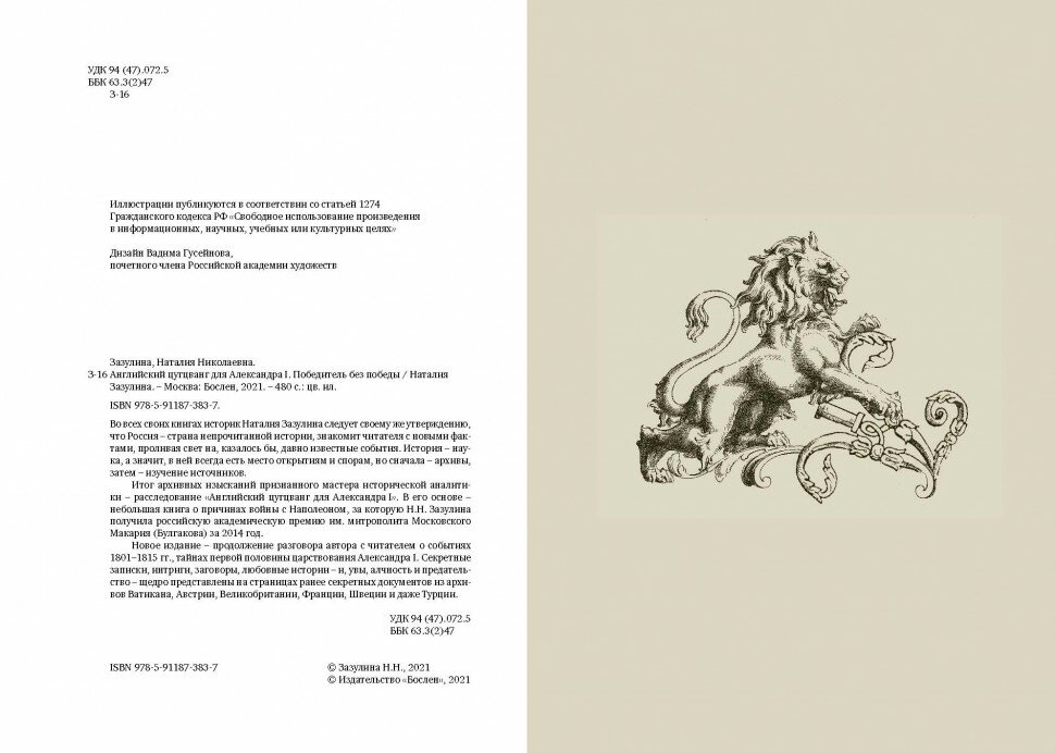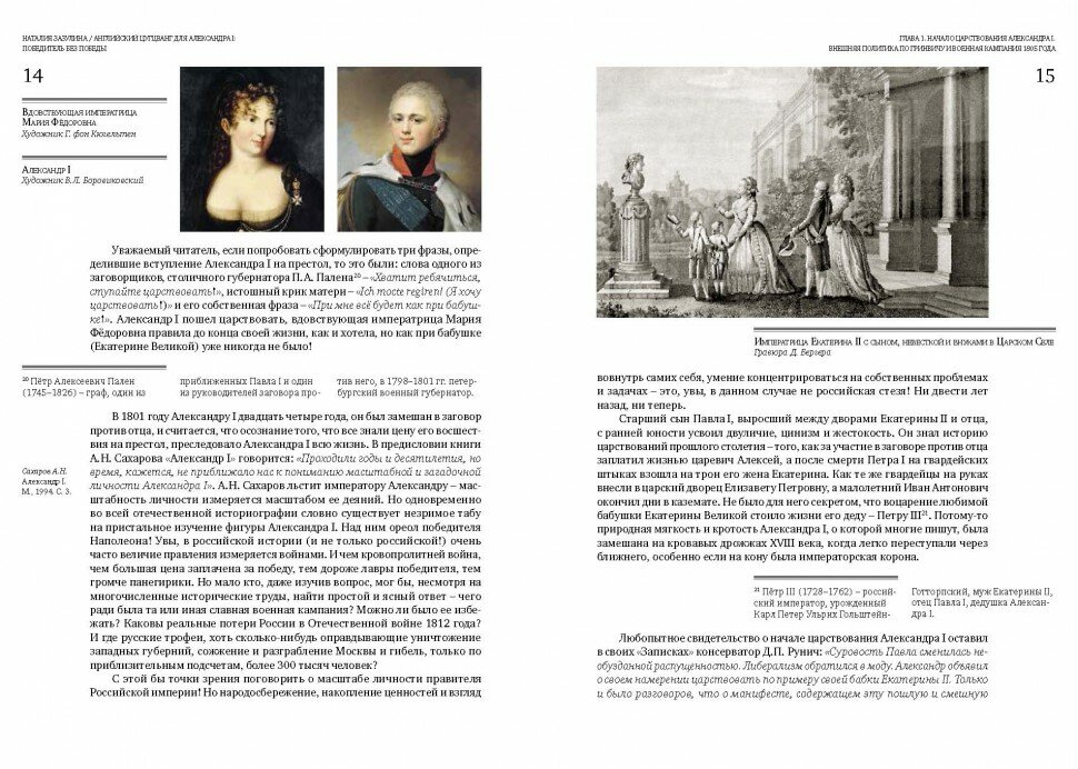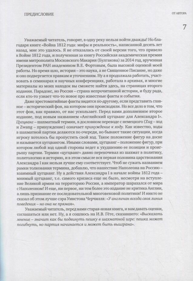 Это издание – продолжение разговора автора с читателем о событиях 1801–1815 гг., тайнах первой половины царствования Александра I. Секретные записки, интриги, заговоры, любовные истории – и, увы, алчность и предательство – щедро представлены на страницах ранее секретных документов из архивов Ватикана, Австрии, Великобритании, Франции, Швеции и даже Турции. Во всех своих книгах историк Наталия Зазулина следует своему же утверждению, что Россия – страна непрочитанной истории, знакомит читателя с новыми фактами, проливая свет на, казалось бы, давно известные события. История – наука, а значит, в ней всегда есть место открытиям и спорам, но сначала – архивы, затем – изучение источников. Итог архивных изысканий признанного мастера исторической аналитики – расследование «Английский цугцванг для Александра I». В его основе – небольшая книга о причинах войны с Наполеоном, за которую Н.Н. Зазулина получила российскую академическую премию им. митрополита Московского Макария (Булгакова) за 2014 год. Новое издание – продолжение разговора автора с читателем о событиях 1801–1815 гг., тайнах первой половины царствования Александра I. Секретные записки, интриги, заговоры, любовные истории – и, увы, алчность и предательство – щедро представлены на страницах ранее секретных документов из архивов Ватикана, Австрии, Великобритании, Франции, Швеции и даже Турции.