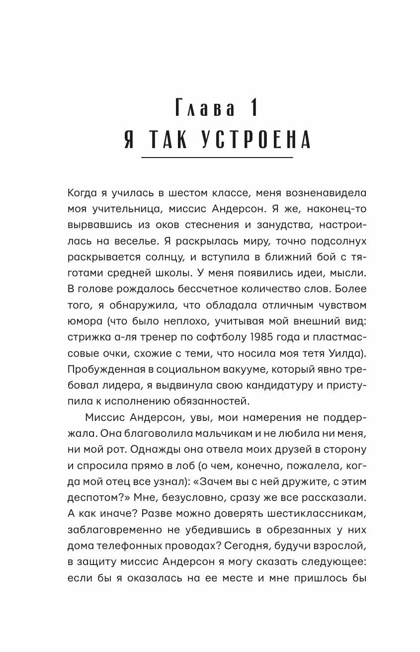 «Ты просто огонь» — книга о дерзости, смелости и свободе. На ее страницах автор разбирает пять категорий рефлексии: кто я? что мне нужно? чего я хочу? во что я верю и как взаимодействую с этим миром? Работая над ними, ты научишься управлять своей жизнью, быть сильной в отношениях и при достижении своих целей, откажешься от обид, уступчивости и пассивной агрессии, с легкостью сможешь понимать, чего ты хочешь именно сейчас.