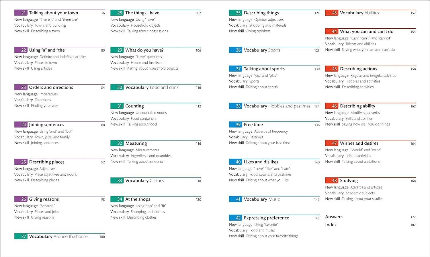 Ideal for English test preparations or ESL lesson plans, the Course Book uses visual teaching methods to introduce the English language, reinforced through a variety of exercises and examples when used alongside our Practice Book (Level 1). From introducing yourself and talking about your home, city, and hobbies to expanding your vocabulary and understanding grammar and punctuation, this is a completely comprehensive introduction to practical English usage.