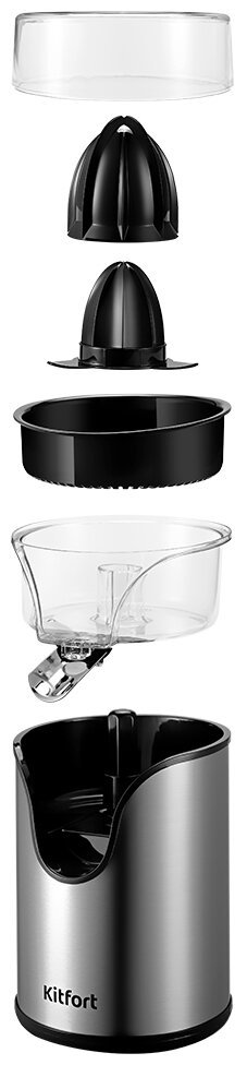 Соковыжималка для цитрусовых Kitfort предназначена для отжима сока из цитрусовых плодов малого и среднего размера. Чтобы получить сок, нужно всего лишь надавить плодом на конус для отжима сока, и вращение конуса соковыжималки активируется.