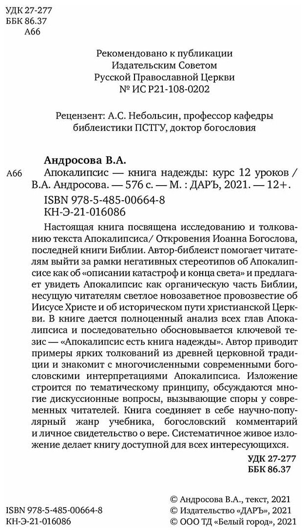 Сервис сравнения цен СкидкаГИД предлагает сравнить цены на товар «Книга: Апокалипсис — книга надежды. Курс 12 уроков (Вероника Александровна Андросова); Даръ, 2022»