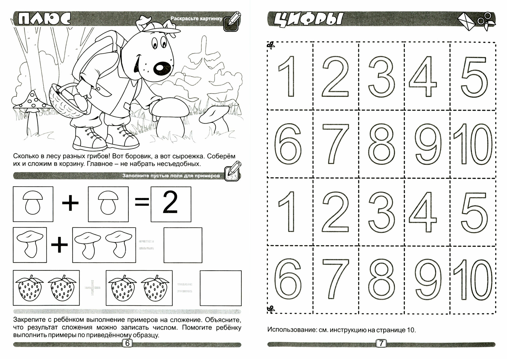 Опытные педагоги, работавшие над этой развивающей прописью, ввели в нее и элементы изучения окружающего мира, и увлекательную игру, с помощью которой ребенок легко освоит счет до десяти за неделю занятий. Помните, что заниматься долго малыш пока не может, поэтому планируйте «проходить» разворот в день. А чтобы пальчики ребенка не устали, дайте ему мягкий простой или цветные карандаши: писать ручкой ему пока рано.