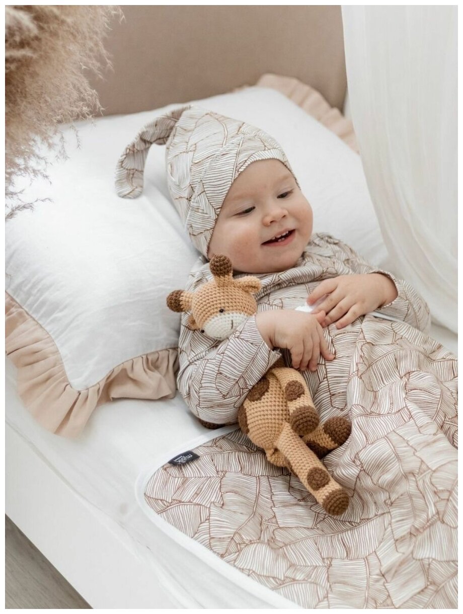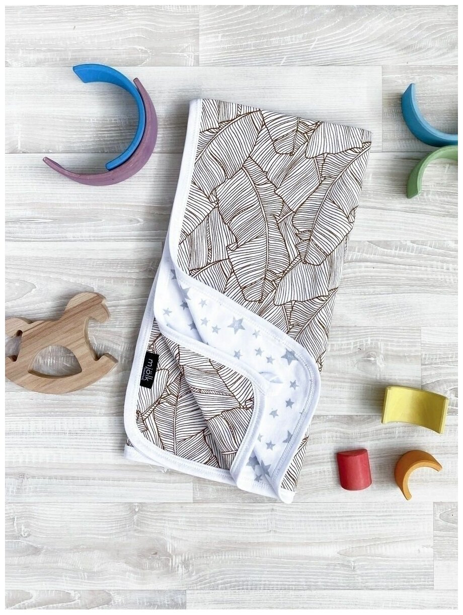 Двусторонний плед Mjolk выполнен из двух слоёв трикотажного 100% хлопка без наполнителя. Материал нежный и мягкий, «дышит», не вызывает аллергии и дарит ребёнку уют.Плед можно использовать для сна в кроватке, коляске и автокресле, как накидку для кормления.