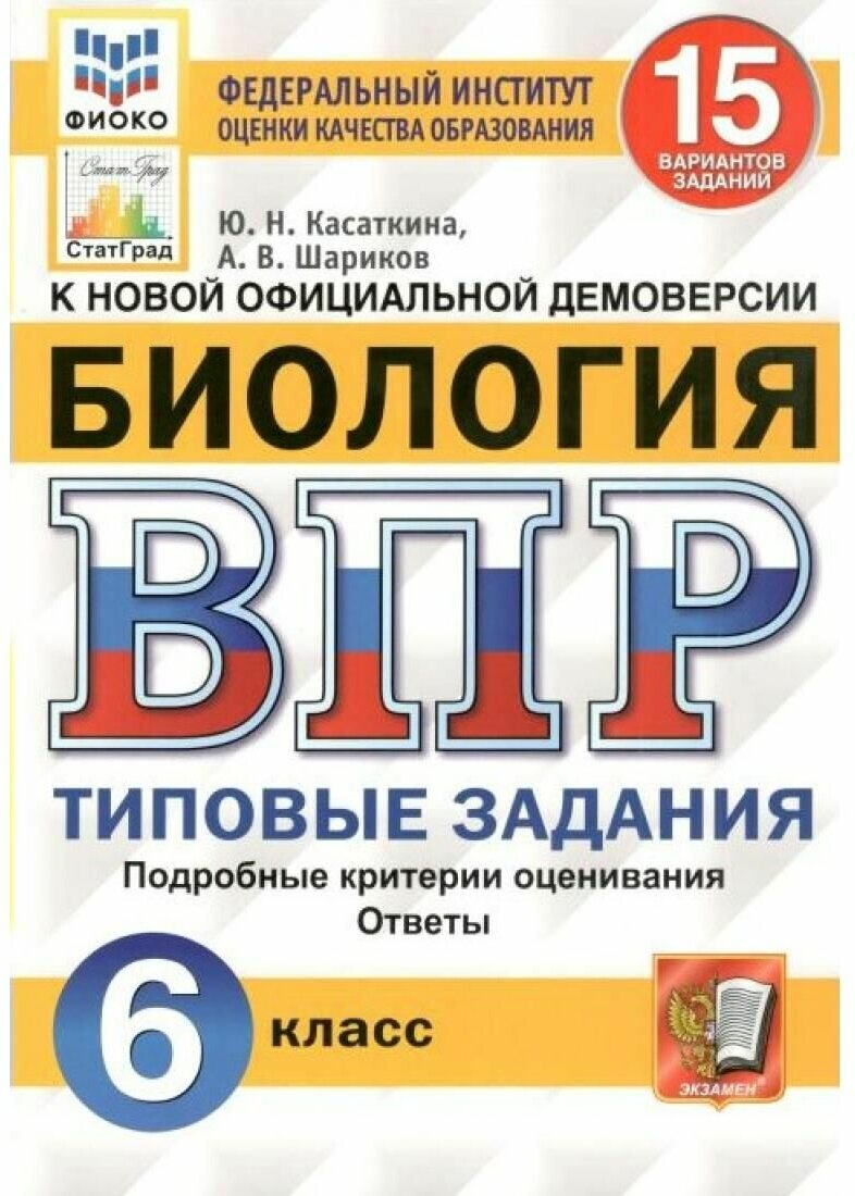 Биология Всероссийская проверочная работа 6 класс Типовые задания 15 вариантов заданий Подробные критерии оценивания Ответы (Касаткина Ю., Шариков А.); Экзамен Издательство, 2022