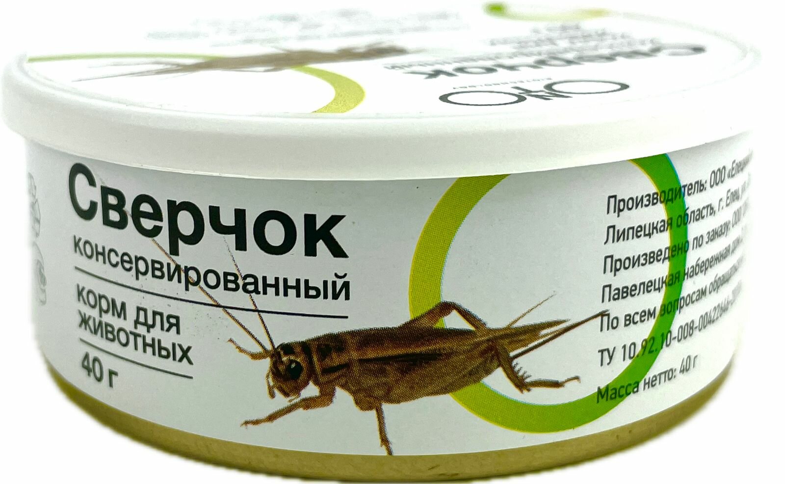 - Консервированный домовой сверчок - корм для экзотических питомцев.