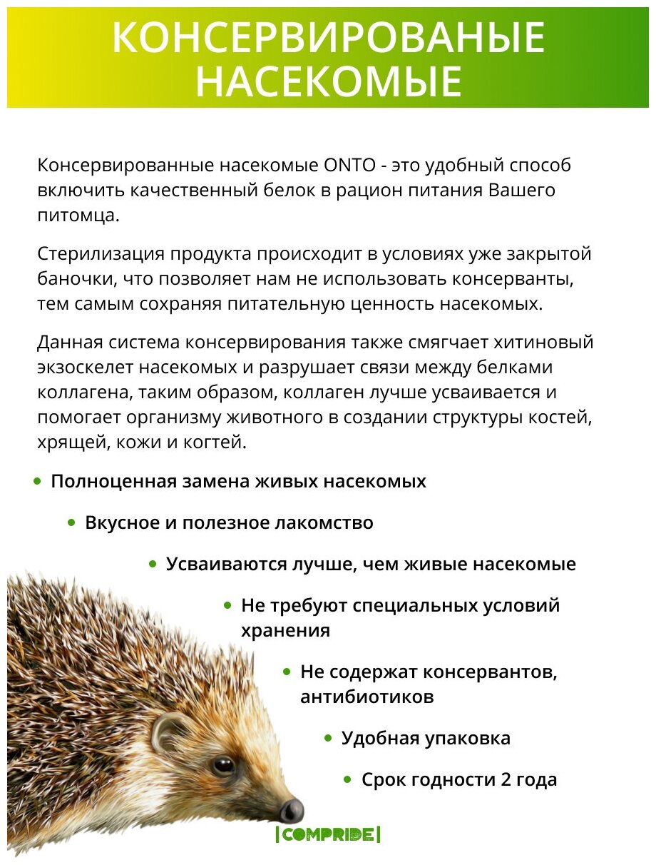 Сверчок консервированный ONTO - это высококачественный корм для насекомоядных птиц, который обеспечивает сбалансированное питание и укрепление здоровья питомца.Сверчок домовый (Achetadomesticus) - популярный вид кормового насекомого, длина тела которого достигает до 2,5 см. В сверчке содержится много белка, мало жиров и оптимальное количество углеводов, что делает его прекрасным выбором для насекомоядных животных.Корм ONTO не содержит консервантов и добавок, что делает его безопасным и натуральным.Сверчок консервированный ONTO является естественным источником минералов, аминокислот и витаминов, включая В-12, который необходим для образования крови, поддержания здоровья клеток печени, нервной и пищеварительной систем питомца, а также укрепления иммунитета.Корм удобен в использовании и хранении: открытые банки можно поместить в холодильник на 7 суток, а удобная крышка защищает насекомых от заветривания и сохраняет их свежесть.Сверчок консервированный ONTO подходит для всех видов насекомоядных птиц, включая енотов, крупных птиц, пауков, ежей, рептилий, грызунов, скорпионов, крупных рыб и некоторых млекопитающих.Вес упаковки составляет 40 грамм, что достаточно для длительного использования.Сверчок консервированный ONTO производится в России и соответствует всем стандартам качества.
