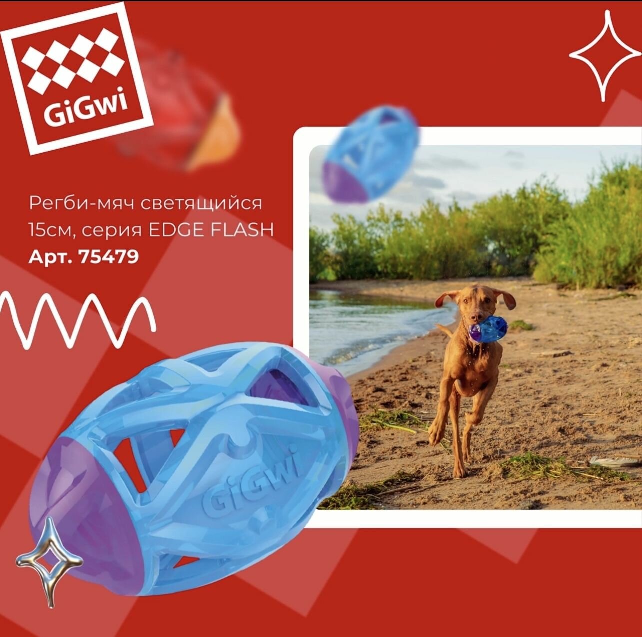 - Gigwi Edge Flash Series - серия игрушек для активных игр с собакой на открытом воздухе в темное время суток.
