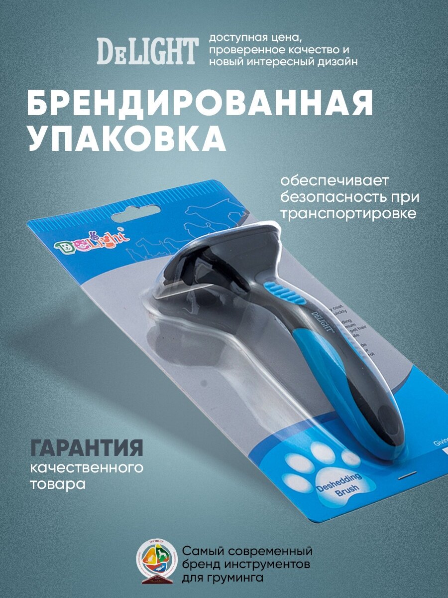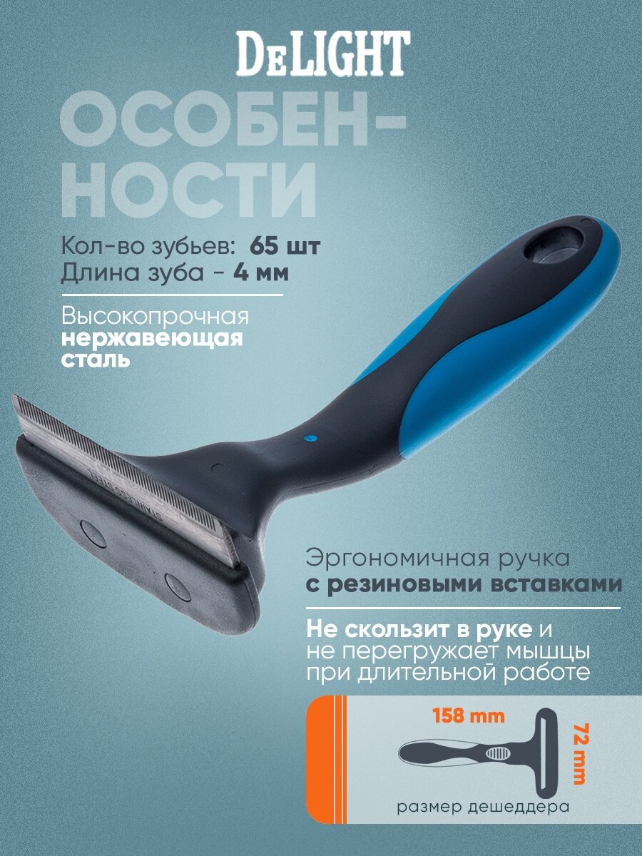 Дешеддер DeLIGHT ROSE средний, 65 зубьев предназначен для вычесывания шерсти и омертвевшего подшерстка у кошек и собак различных пород. Подходит для длинношерстных и короткошерстных пород. Дешеддер DeLIGHT глубоко проникает в шерсть не повреждая остевой волос и сохраняет здоровье кожи и шерсти. Значительно облегчает уход за вашим питомцем и делает процедуру приятным, безболезненным и безопасным занятием, а также экономит ваше время. Дешеддер помимо удаления шерсти и снижения линьки на 90%, способствует здоровому росту и блеску шерсти, сохраняет аккуратный внешний вид вашего питомца и не допускает образования колтунов. Лезвия изготовлены из высококачественной и высокопрочной нержавеющей стали, за счет чего дешеддеры DeLIGHT служат долго и эффективно. Прочная пластиковая крышка, входящая в комплект, надежно защищает гребень и лезвия от повреждений и обеспечивает комфортное хранение. Эргономичная ручка с резиновыми вставками удобна и комфортна, не скользит в руке и не перегружает мышцы при длительной работе. Дешеддеры DeLIGHT подходят как для профессионального груминга, так и для применения в домашних условиях.Инструкция по применению: вычесывайте шерсть питомца, проводя инструментом по направлению роста волос, постепенно проникая лезвием вглубь шерсти животного и не задерживаясь надолго в одной области. В процессе и по окончанию процедуры удаляйте шерсть с инструмента. Рекомендовано использовать инструмент 1-2 раза в неделю. Для достижения максимального эффекта питомец должен быть сухим и чистым. Общая длина дешеддера: 16 см.Длина ручки 12 см.Ширина металлической части гребня 6,6 см.Кол-во зубьев: 65 шт.Длина зуба 0,5 см. Инструменты для груминга DeLIGHT – превращаем заботу в удовольствие!