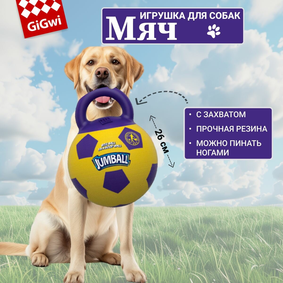 Ручка сделана из пористой резины, ЧТО очень сильно уменьшает вероятность прокусывания мяча собакой. Дизайн ручки также позволяет собаке легко подобрать МЯЧ И принести ВАМ обратно. МЯЧ можно футболить ногами.Чтобы собака не прокусывала мяч следите, чтоб он был хорошо накачен. В случае необходимости подкачайте мяч насосом через имеющийся клапан.игрушка для собакМЯЧ С захватомрезиновый26 СМ Игрушка для собак GiGwi "Джамболл" выполнена из прочной резины в виде мяча с ручкой. Игрушка подойдет для активных игр с собаками средних и крупных пород. Ручка поможет собаке легко подобрать мячик, а материал ручки сделан из пористой резины, что не позволит прокусить ее. Игрушка не ранит дёсны и зубы животного, материал нетоксичный.
