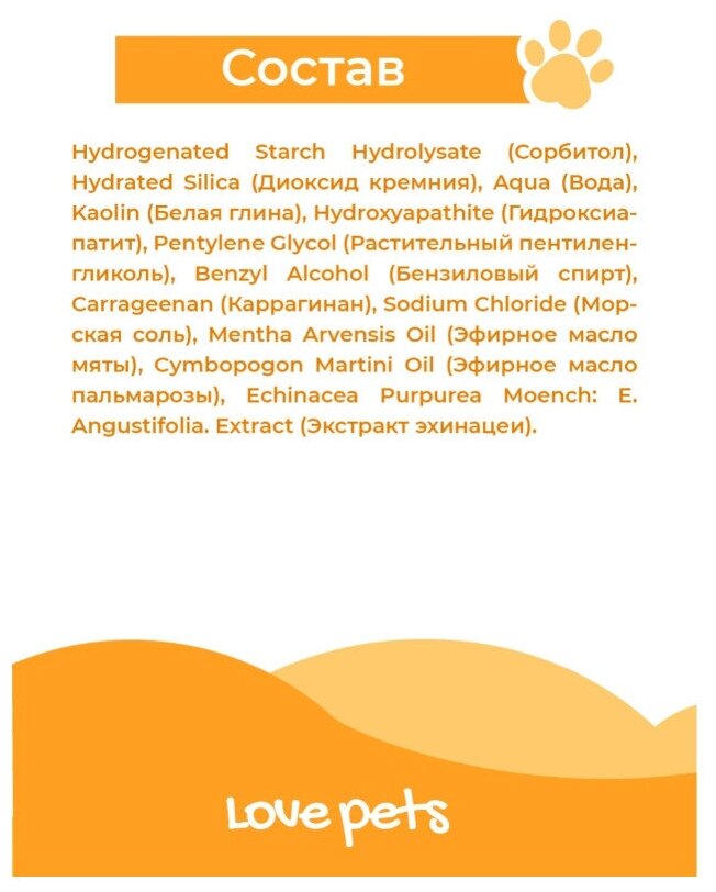 Зубной гель поможет сохранить здоровье зубов и дёсен вашего питомца. Благодаря натуральным ингредиентам в составе он бережно очищает зубы, снимает зубной налёт, уничтожает болезнетворные бактерии и убирает неприятный запах.Гидроксиапатит укрепляет зубную эмаль.Эфирные масла оказывают противовоспалительное, антибактериальное и освежающее действие.Гель не даёт обильной пены, которая может доставлять дискомфорт животному, при этом, эффективно справляется со своими задачами. Мягкий абразив вкупе с действующими компонентами задерживает образование зубного камня.