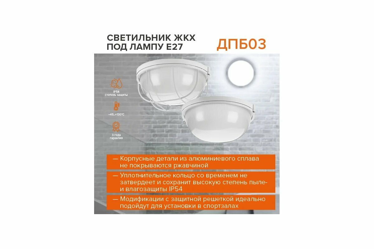Классические настенно-потолочные светильники серий ДПБ03 с матовым стеклянным рассеивателем, под лампу с цоко-лем Е27, аналог светильникам НПП, НПБ и НБП. Применяются для основного и вспомогательного освещения ЖКХ, а также лестниц, коридоров, кладовых и других подсобных помещений.