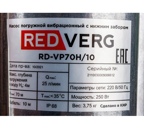 Насос вибрационный RedVerg предназначен для работы с водой, применяющейся в хозяйственных нуждах. Он идеален для вашего дома. Насос способен забирать жидкость из водоемов, искусственных резервуаров и скважин диаметром более 100 мм. Вибрационный насос превосходно справится со всеми задачами, стоящими перед владельцем частного дома и дачного участка.