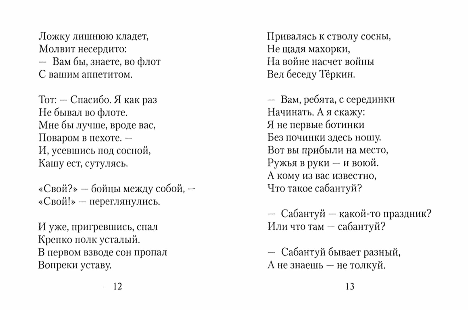 Один из главных поэтических шедевров прошлой войны, заслуженно получивший всенародную славу и признание. Издание миниатюрное, примерно шесть на десять сантиметров, в твёрдом переплёте с суперобложкой. Шрифт среднего размера, читается легко, поскольку бумага страниц качественная и белая. Начало каждой главы украшено чёрно-белой военной фотографией или рисунком.