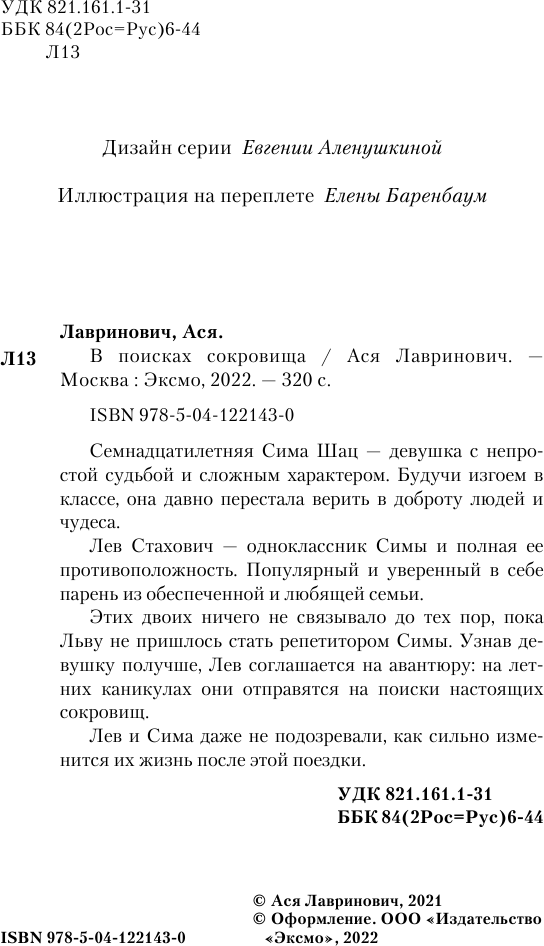Книга: В поисках сокровища (Ася Лавринович); Эксмо, Like Book, Редакция 1, 2025