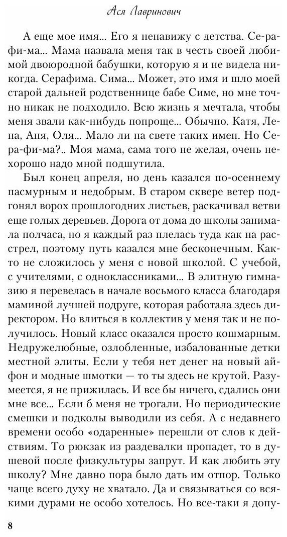 Сима – девочка-изгой, над ней издеваются в классе, не все, конечно, но и заступаться за неё никто не рвётся, кроме Антонины Юрьевны – директора гимназии. Антонина тесно дружила с мамой Симы, поэтому и присматривает за девочкой.