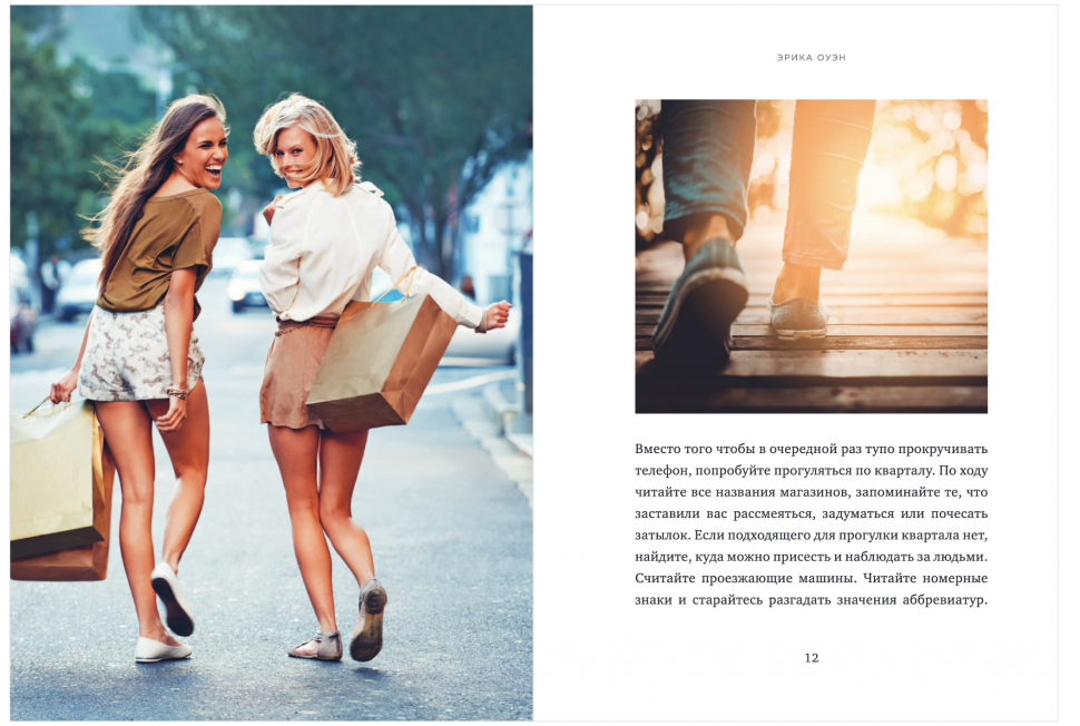 Эрика Оуэн — журналист-путешественник, колумнист Vogue, GQ, Bustle. Она уверена: фланирование, как многим известное хюгге, может стать стилем жизни. Это прогулка ради прогулки, которая даст возможность не просто насладиться путешествием, но и позволить увиденному изменить ваши мысли и восприятие мира.
