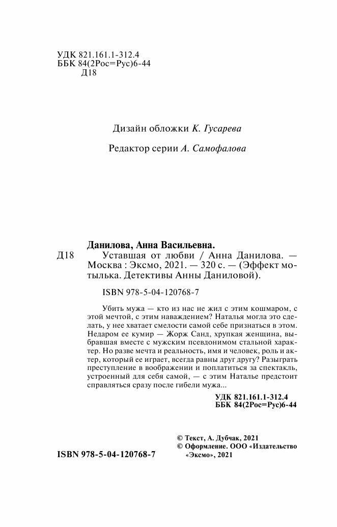 Книга: Уставшая от любви (Анна Васильевна Данилова); Эксмо, 2021